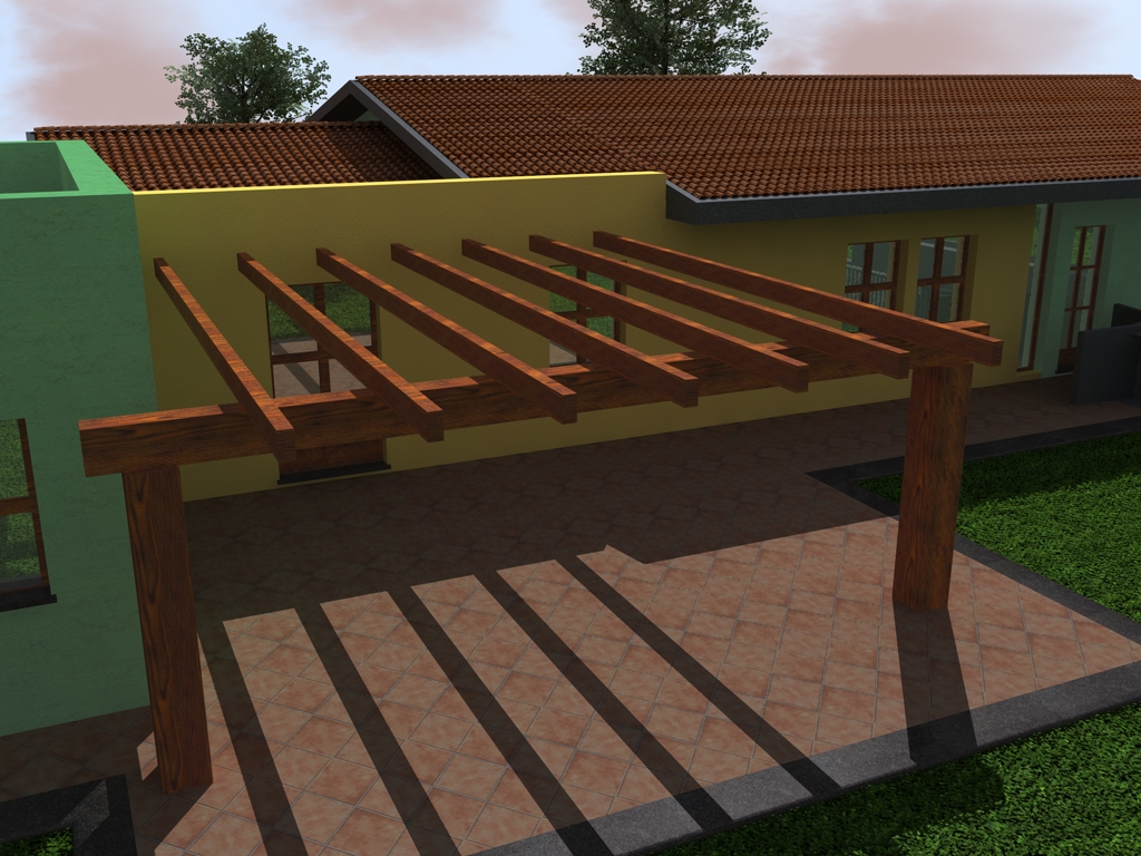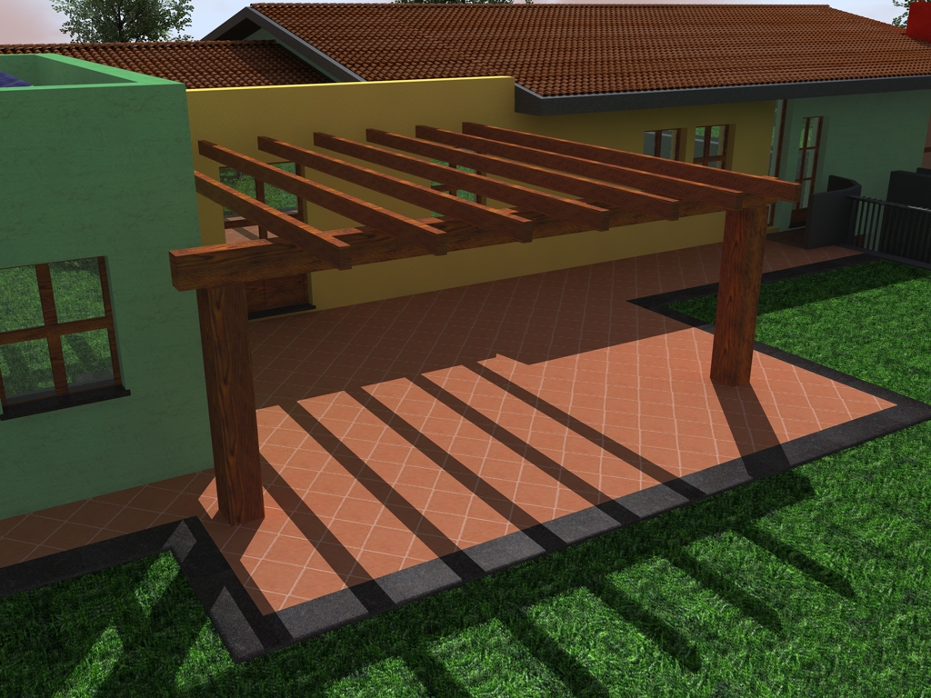 ho cambiato la proprietà di proiezione dell tegole mettendo quella cubica, e mi sembra che ora ci siamo....per quanto riguarda la texture del pavimento ho provato a modificarla in photoshop, mi sa che però si vede sempre un pokino la ripetizione della texture.....per l erba invece ho applicato un materiale gia presente in cinema architetturial, xò boh forse forse era meglio quella di prima....ke dite???