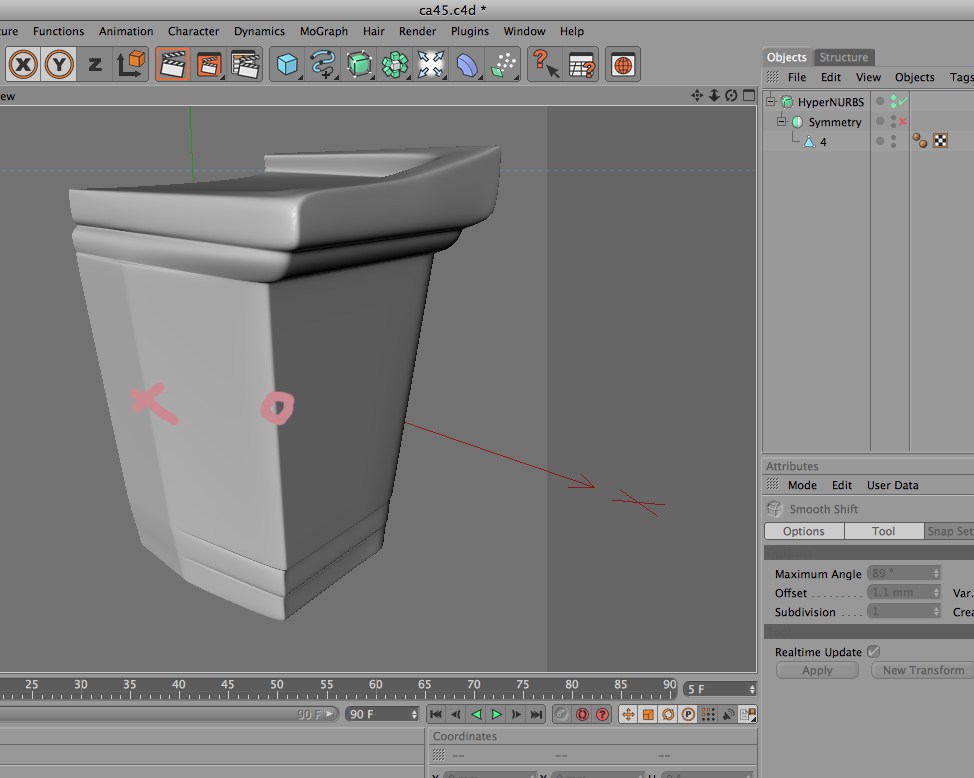 dovrei fare la parte che ho segnato con la O più smussata, mentre eliminare la parte con la X o cmq attenuarla farla meno rigida vi lascio le viste
