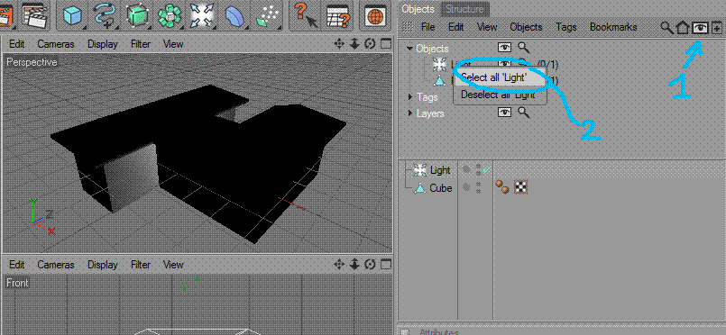 2. mouse Dx su Oggetti -> Luci, seleziona tutto