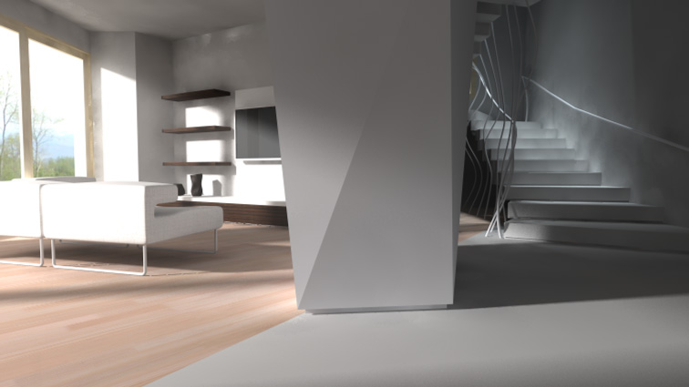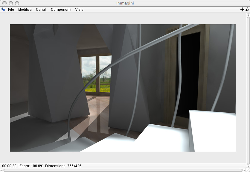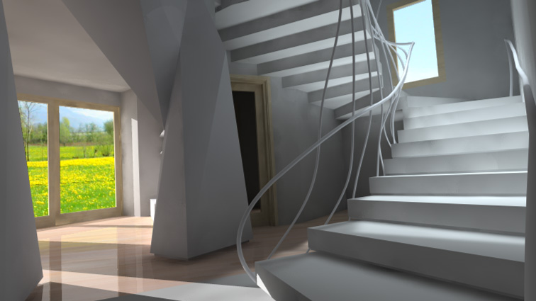 Tutto quello che vedete modellato l'ho realizzato io di sana pianta senza nessun punto di riferimento con l'utilizzo di un cad, per la modellazione del corrimamano della scala ed i pilastroni sgembi con cinama 4d.