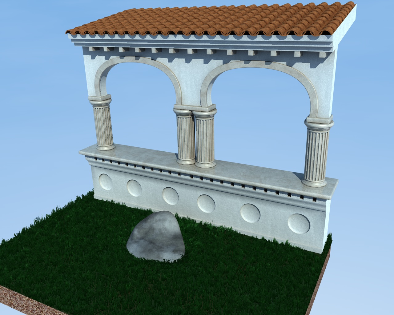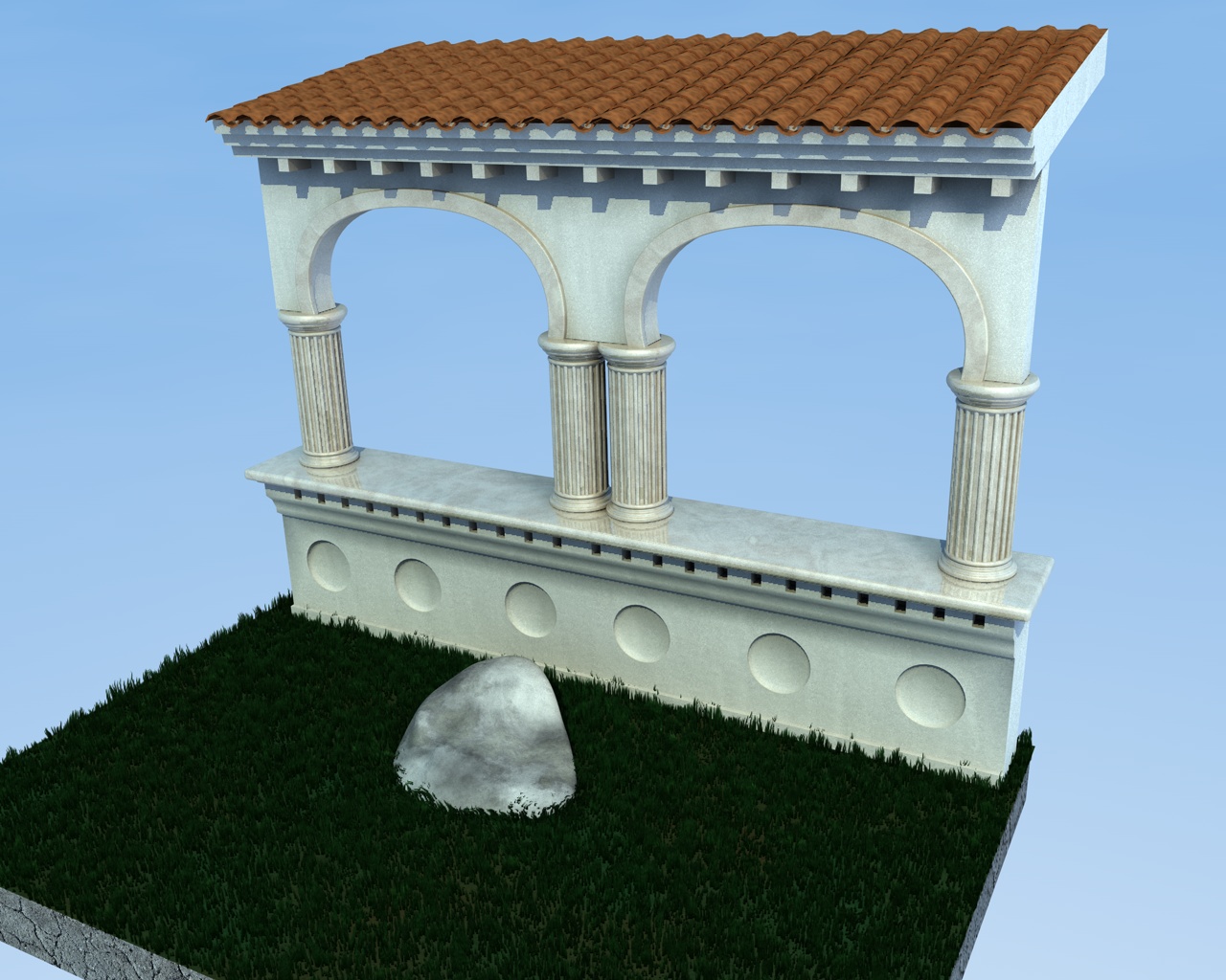 comunque questa scena non piace neanche a me; sono partito facendola così solo per vedere come "veniva fuori" un portico fatto in questa maniera, con certi materiali, ma alla fine dei conti, dal punto di vista del render la scena è piatta, fine a se stessa, non ha profondità.