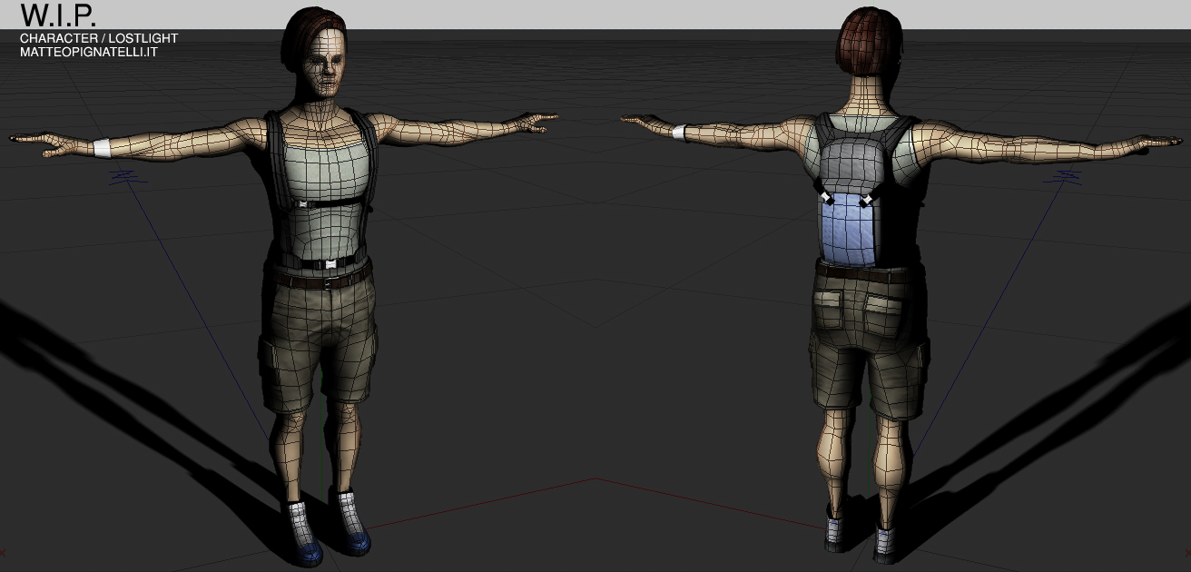 Il personaggio conta poco più di 10.000 triangoli e vi verranno applicate 3 texture anche in realtime (diffuse,normal,specular).