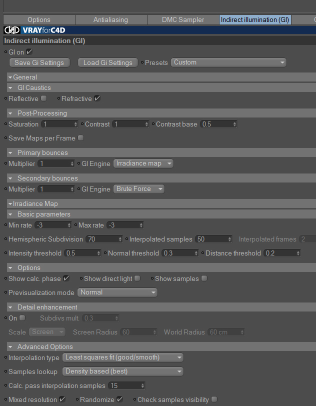 Provi di usare Presets di Vray.