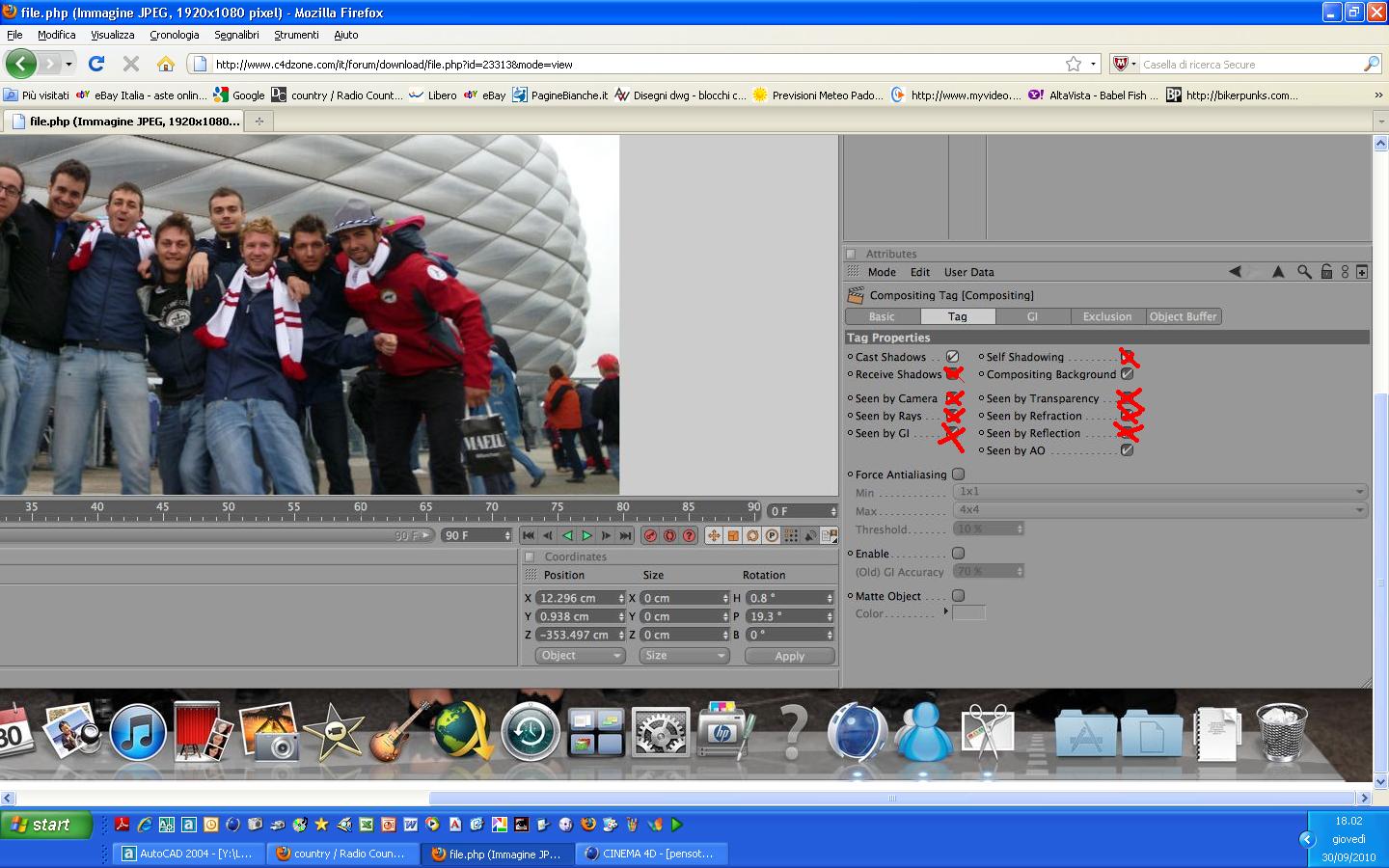 gli hai tolto tutte le spuntature del tag compositing proietta ombre, ricevi ombre e visto da ao?