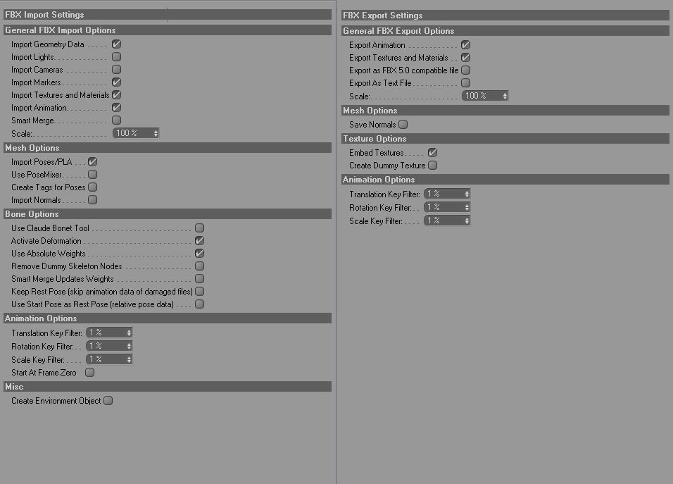Allego anche uno screen relativo alle impostationi import\export per l'FBX.