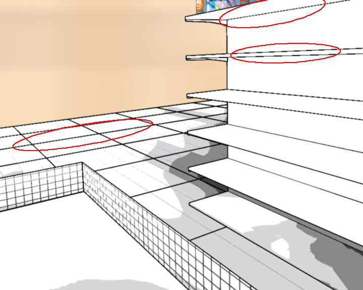 Quello che non mi riesce di realizzare con risultati soddisfacenti sono alcune linee degli spigoli degli scaffali che mi risultano troppo frastagliate, òe vorrei più fluide e pulite, sapete dirmi come regolare le impostazioni?