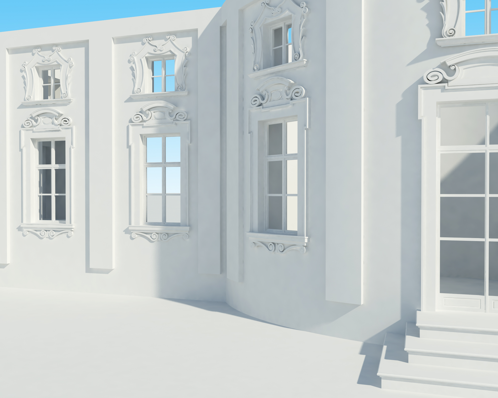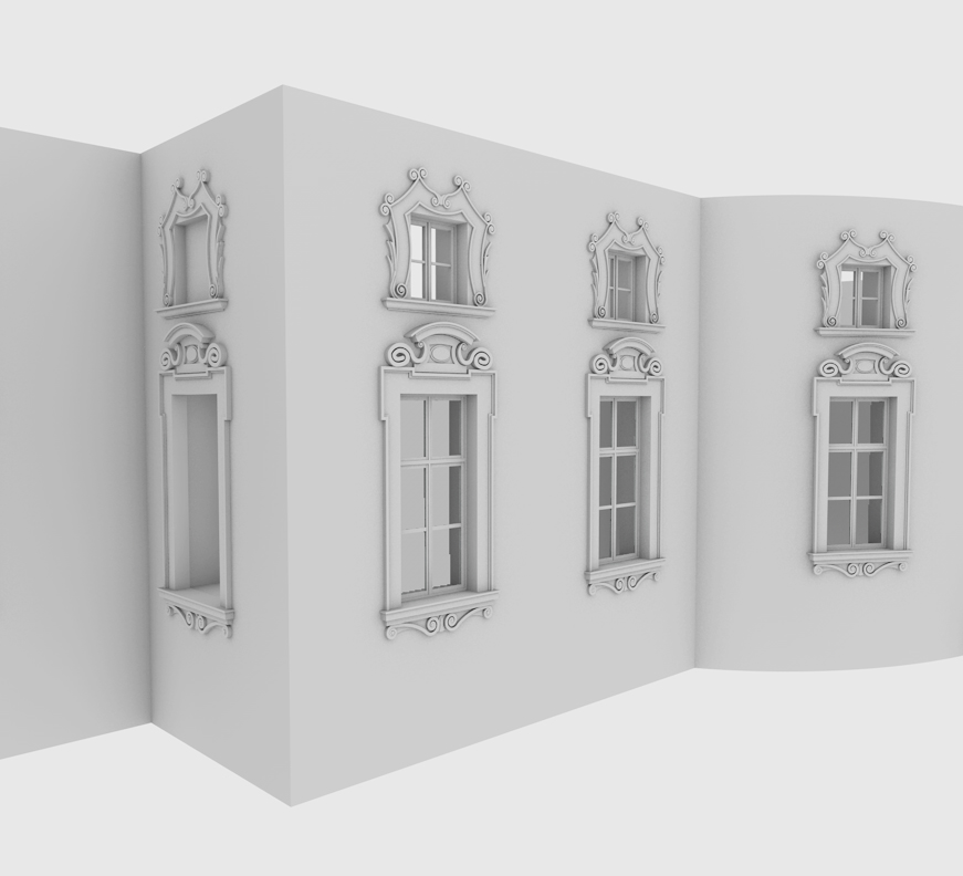 altro piccolo passo.. render low-res parte centrale del piano terra..ora inizio cornici e zoccolature..ai lati verranno modellati una chiesa e giardini d'inverno.