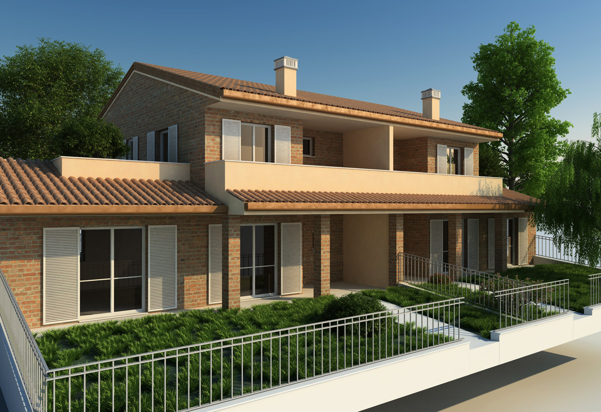 il 3d è in corso di definizione, mancano alcuni particolari come i pluviali poichè nei 2d non c'erano e non so dove il progettista vuole farli passare (soprattutto con quella tettoia che fa da marcapiano tra il piano terra ed il primo piano). Idem per la casa che vola: non c'è congruenza tra sezioni e planimetria (quote) e quindi attendo istruzioni (dopo il 3 gennaio) per integrare e terminare il lavoro. Ne ho approfittato per sperimentare vray ed essere operativo da gennaio in poi.
