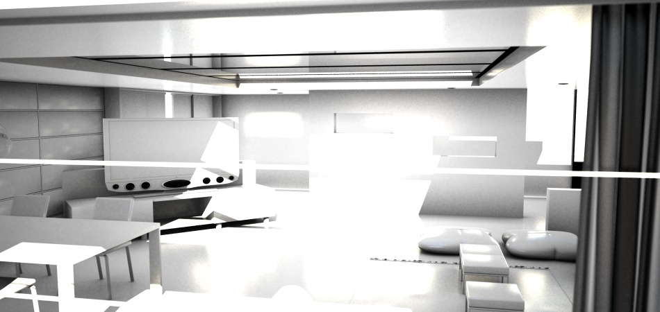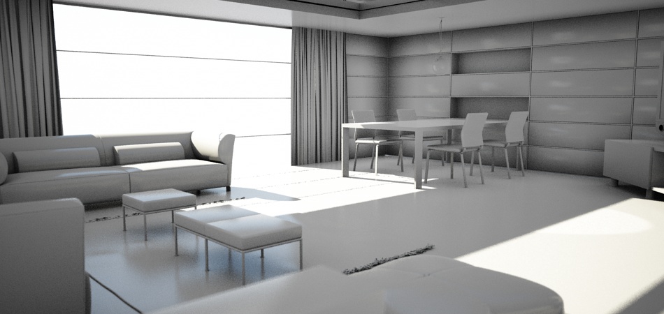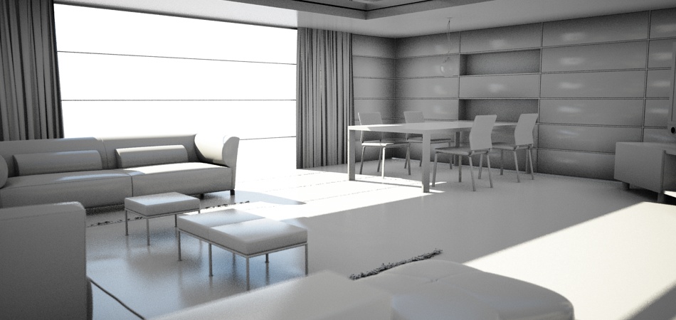 Personalmente la tua scena proverei ad illuminarla solo in questo modo inizialmente: solo la luce solare, poichè è difficile immaginare che in uan stanza illuminata dal sole attraverso una finestra si tenga anche la luce accesa: sai che bolletta