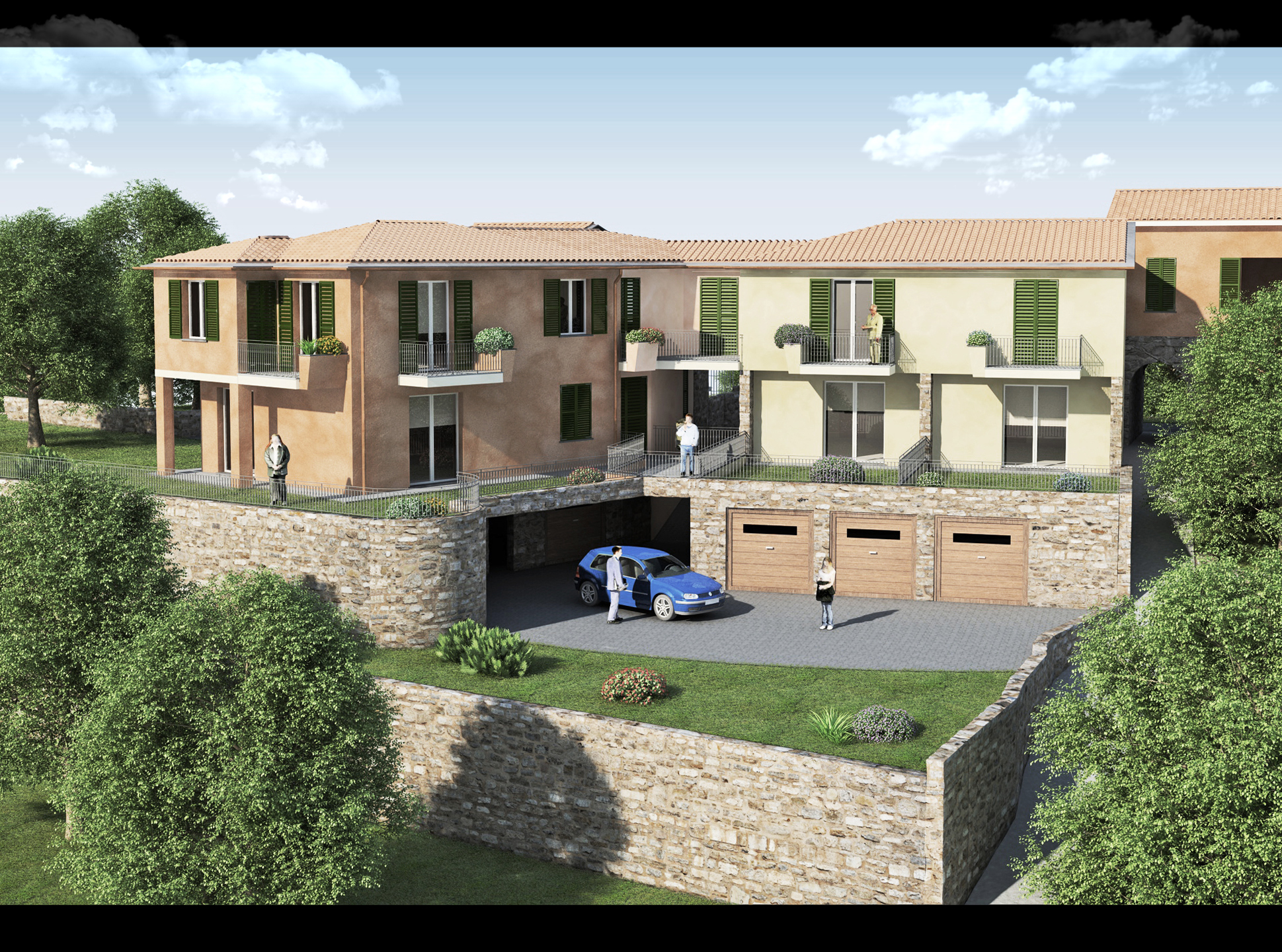 trattasi di un lavoro di modellazione-texturing-rendering di un progetto non mio riguardante ristrutturazione di un piccolo "borgo"
