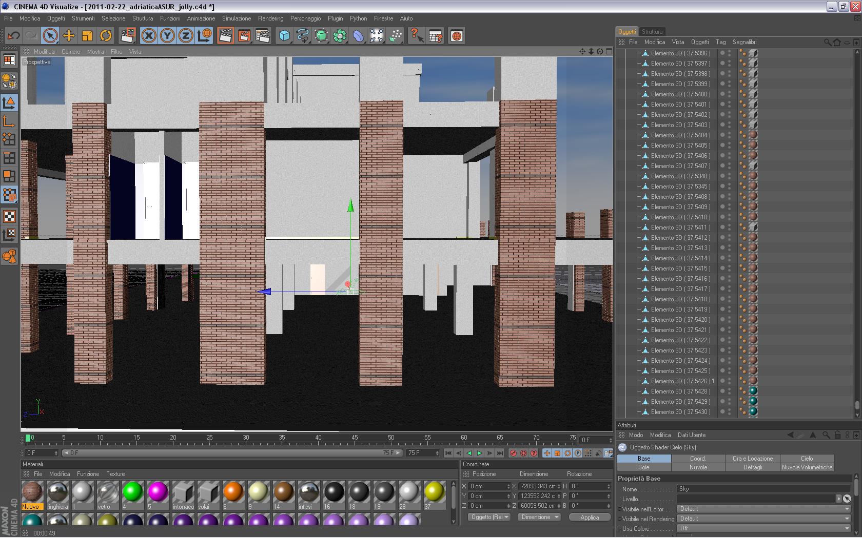 Il problema è che nella visualizzazione (per esempio nella vista prospettica), attribuendo il materiale ai vari spezzoni di muro, aggiustando le file di mattoni facendo combaciare i corsi più scuri ecc, quando vado a renderizzare mi appare un'altra disposizione, il che è una brutta cosa considerato che il modello viene da Allplan, ed è composto da molti muri separati.