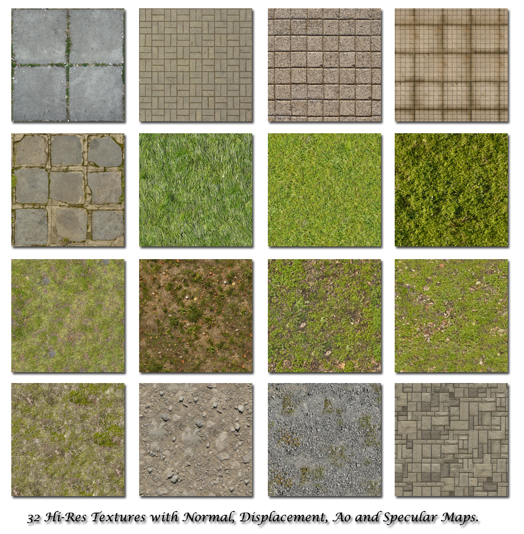 32 Bricks, Grass and Floor textures great for your designing work, great for 3d renders, amazing for game models.