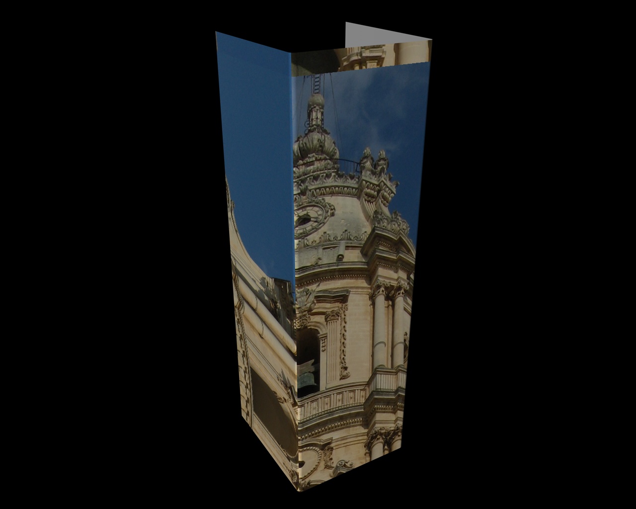 1- applichi altri 2 materiali sempre con mappatura Flat, alle altre due facce del modello, ruotando naturalmente di 90º la proiezione e poi spostando la texture in modo da farla combaciare con la vista frontale...