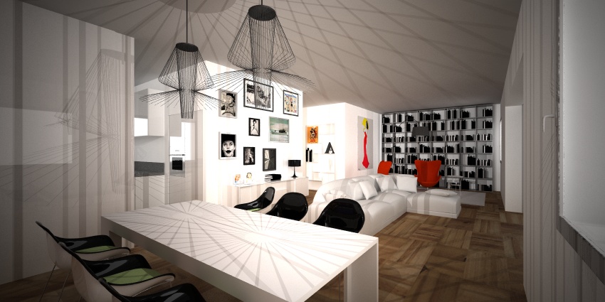 Nella 2a foto le sedie dovrebbero essere tutte bianche invece me le fa metà e metà... e il materiale è usato anche sulla madia e sulla libreria