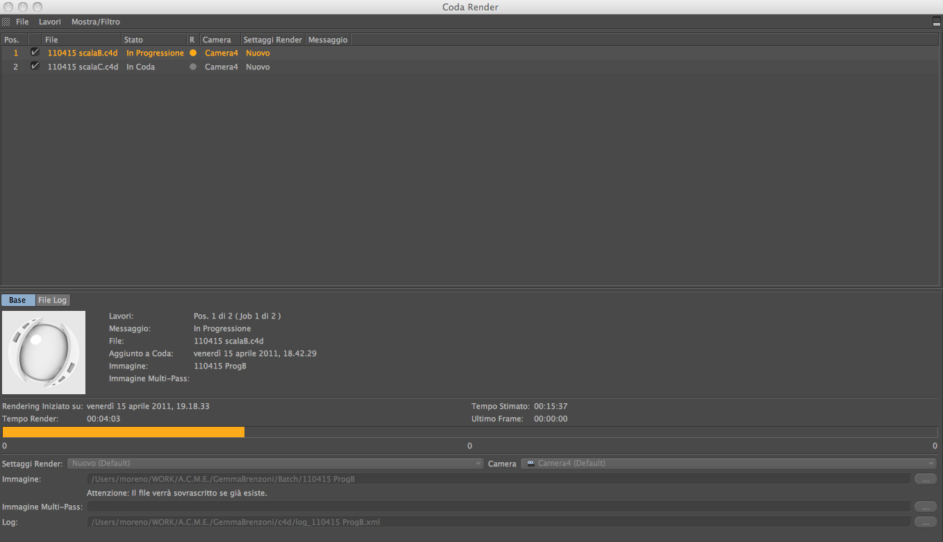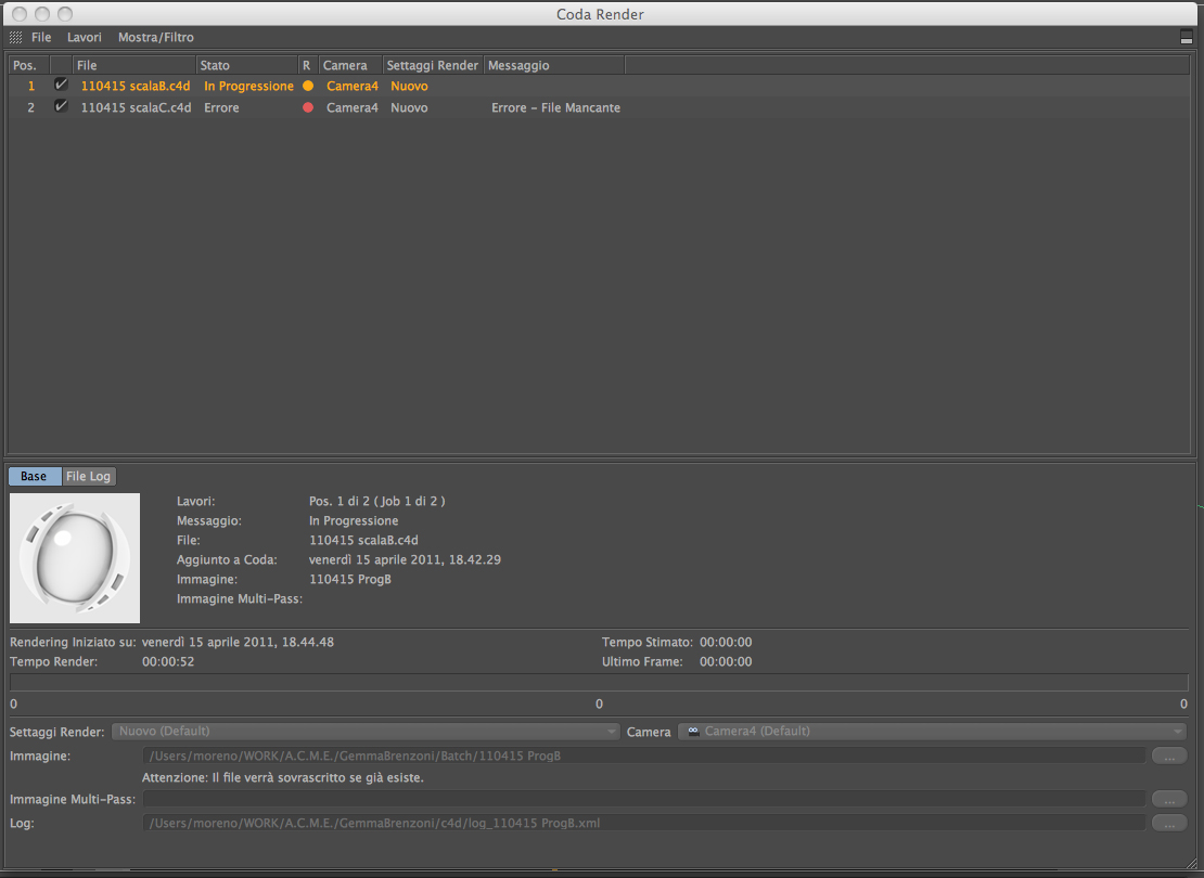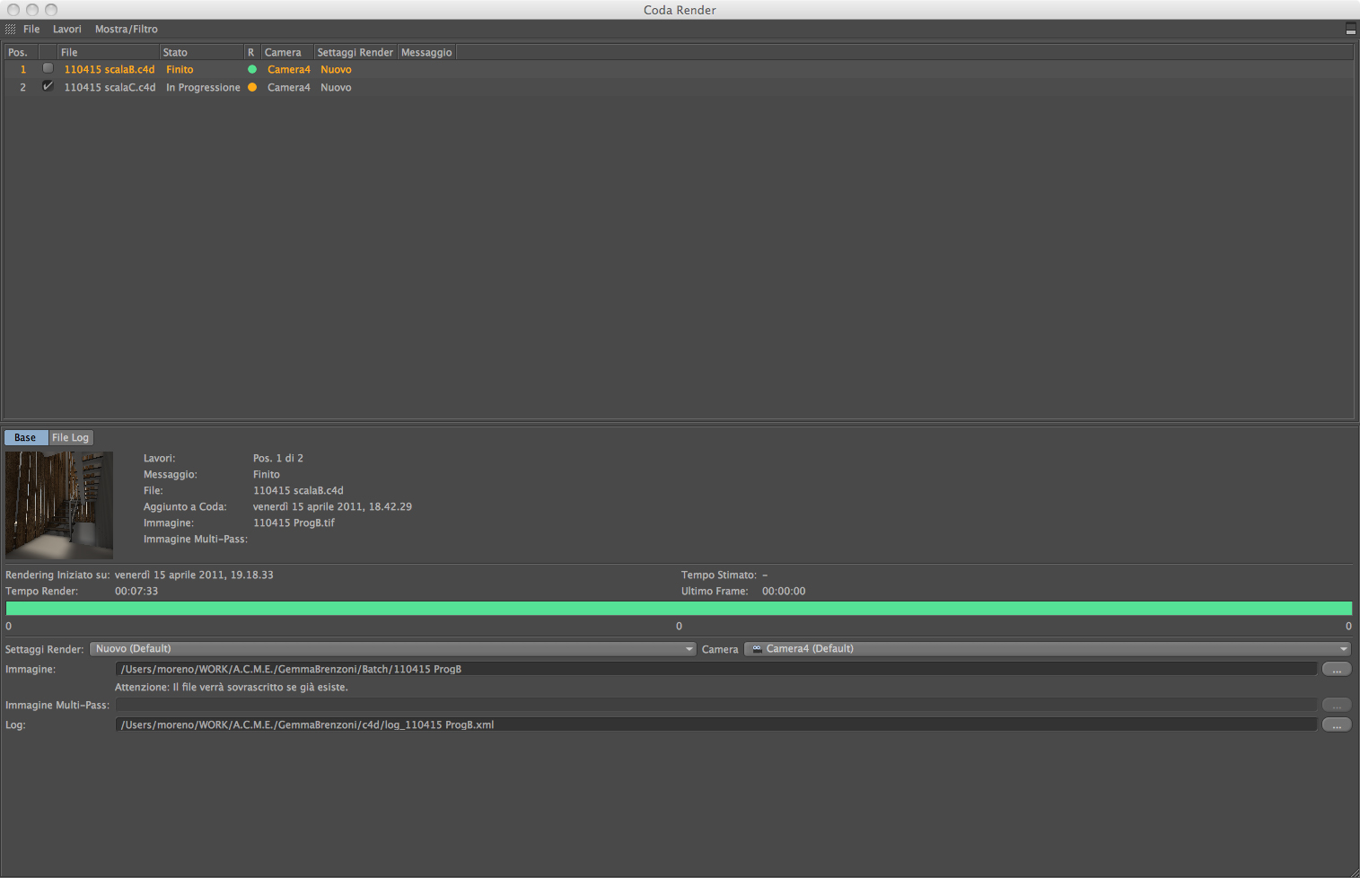 Ecco..ho risolto il problema del file errato (mancava una texture)...solo non capisco ancora perchè non vedo l'anteprima dell'elaborazione sia nella finestra coda di render che in visualizzatore immagini...cavoli