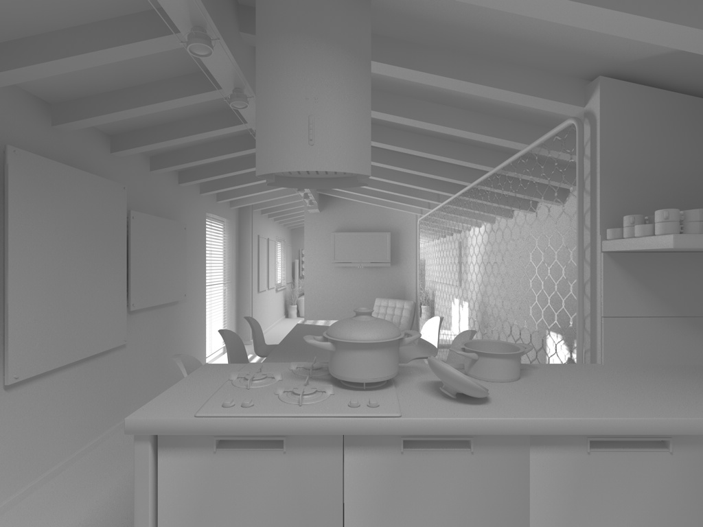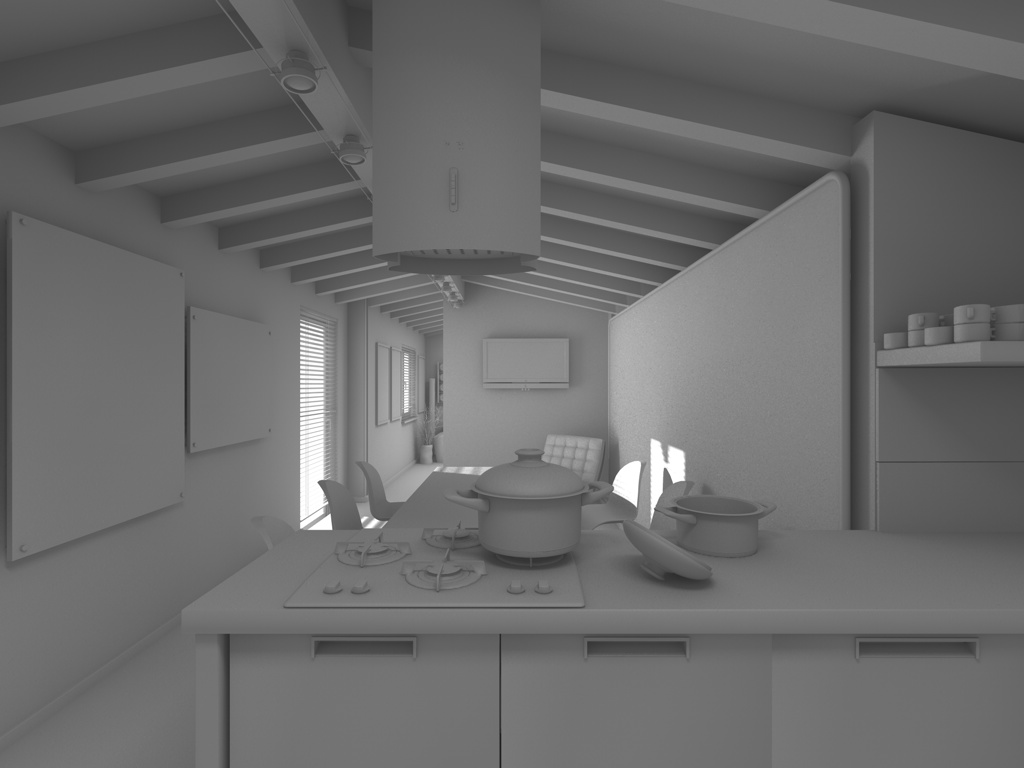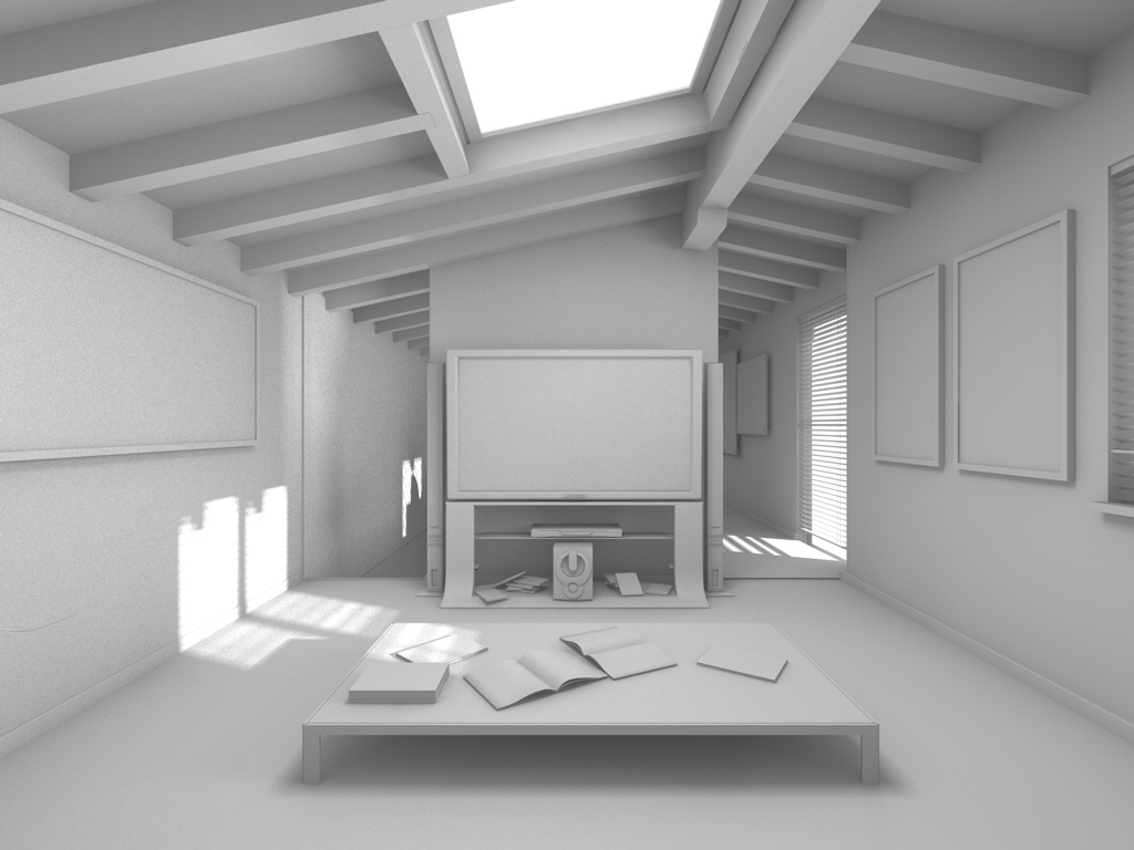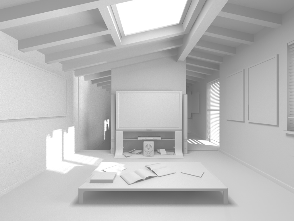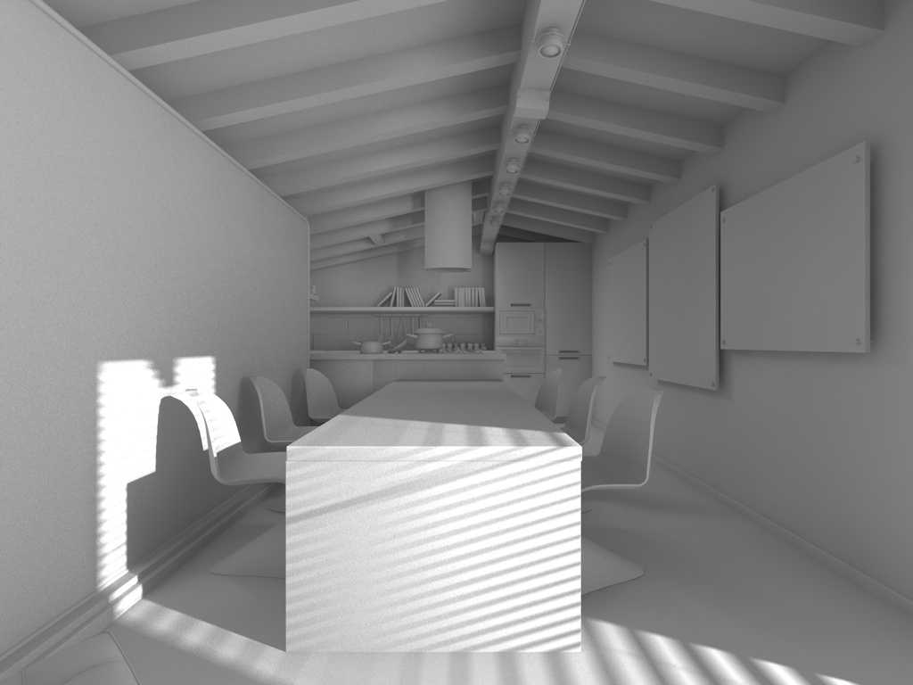 Questo è il risultato ottenuto toglieno l'occlusione ambientale ed aumentando leggermente la forza delle luci poste sulle finestre.