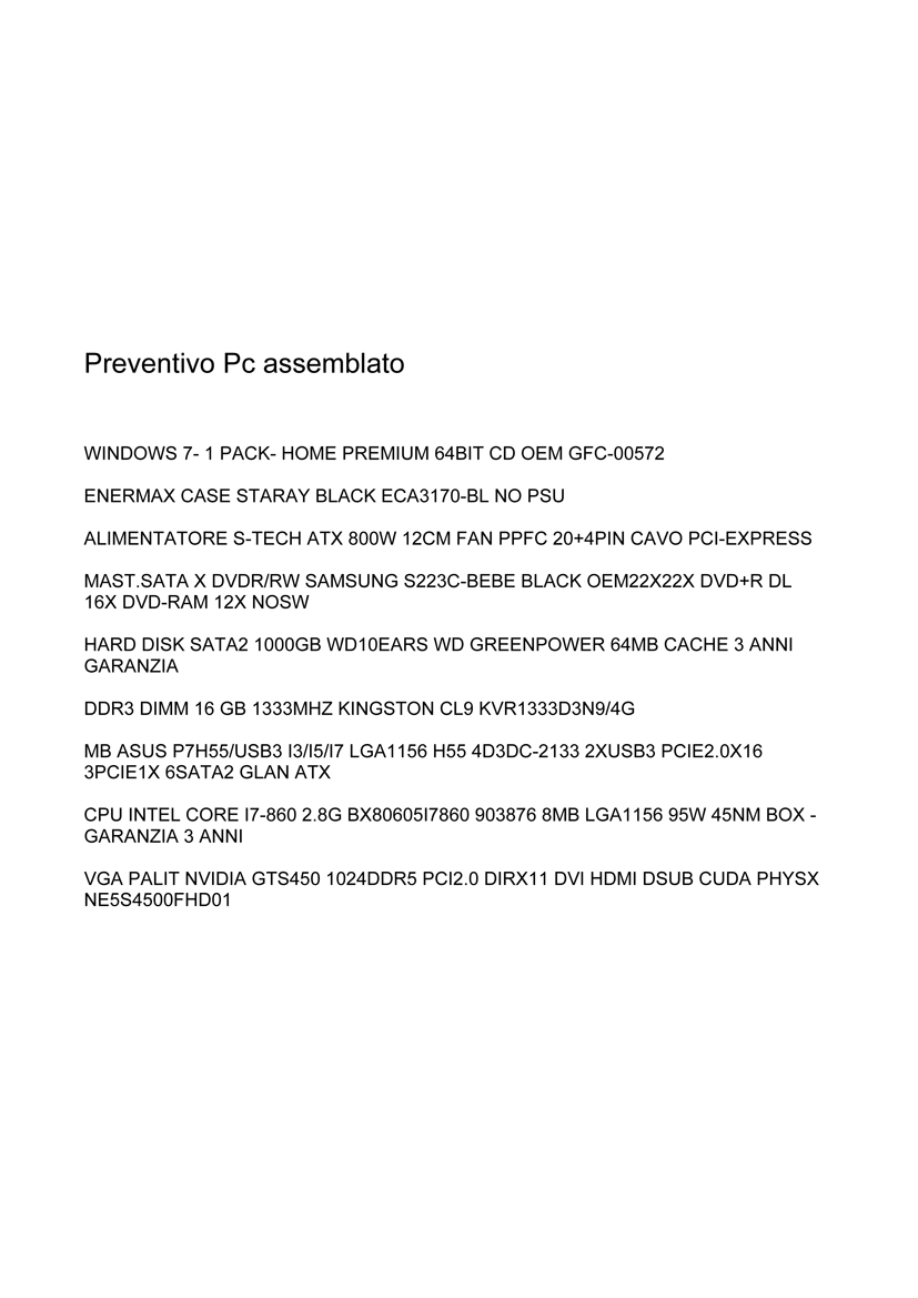 Ma è tutto un altro pianeta rispetto a quello che ti hanno proposto... fatti un giro sugli store online e assemblatelo con i pezzi indicati, tanto ti arriva a casa già bello montato...