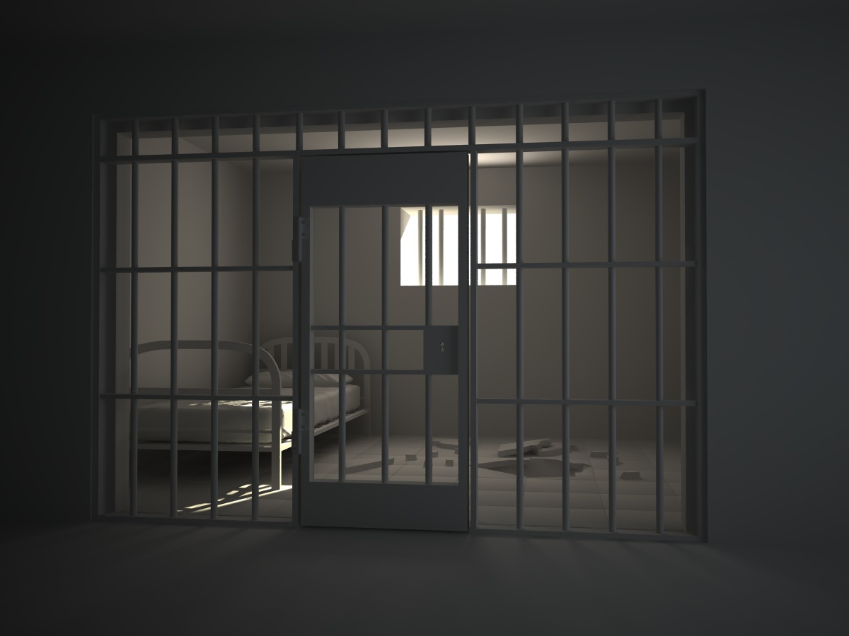 fuori dalla cella, magari sulla destra una sedia appoggiata al muro, con sopra un berretto, e una luce rossa tipo d'emergenza in alto, mentre sulla sinistra, che è più in ombra, appendere il mazzo di chiavi, così da andar in contrapposizione al buco nel pavimento :D