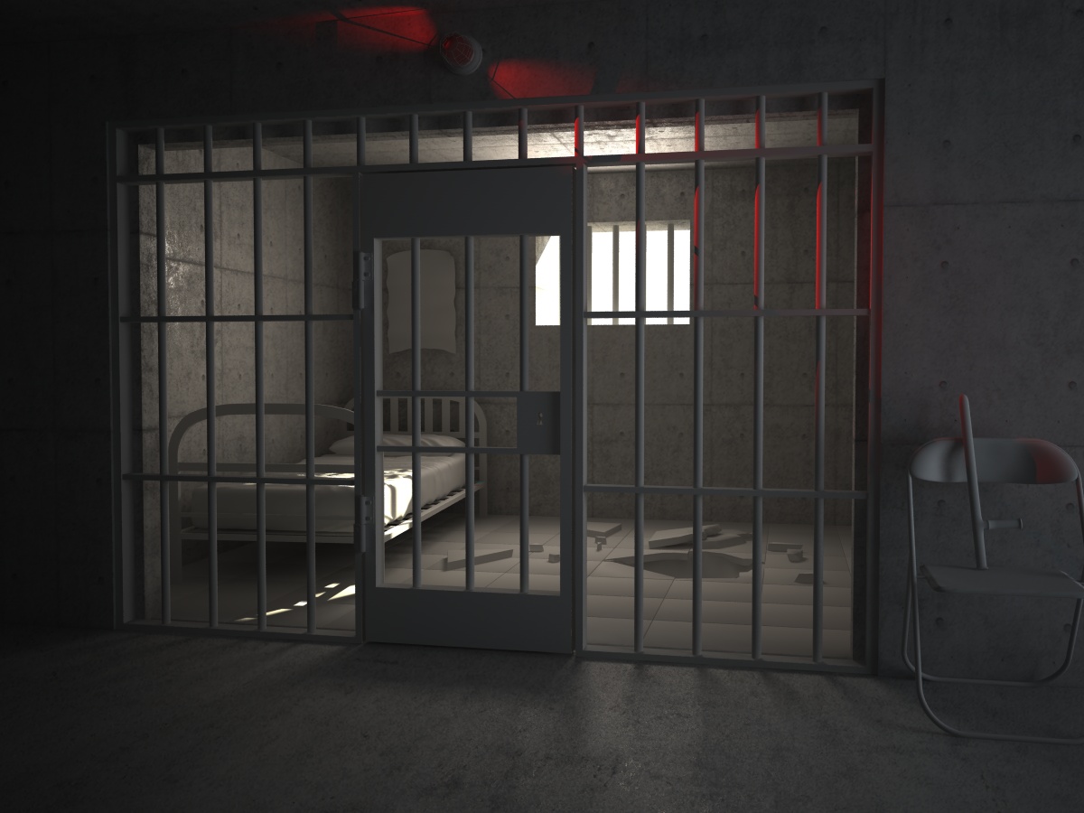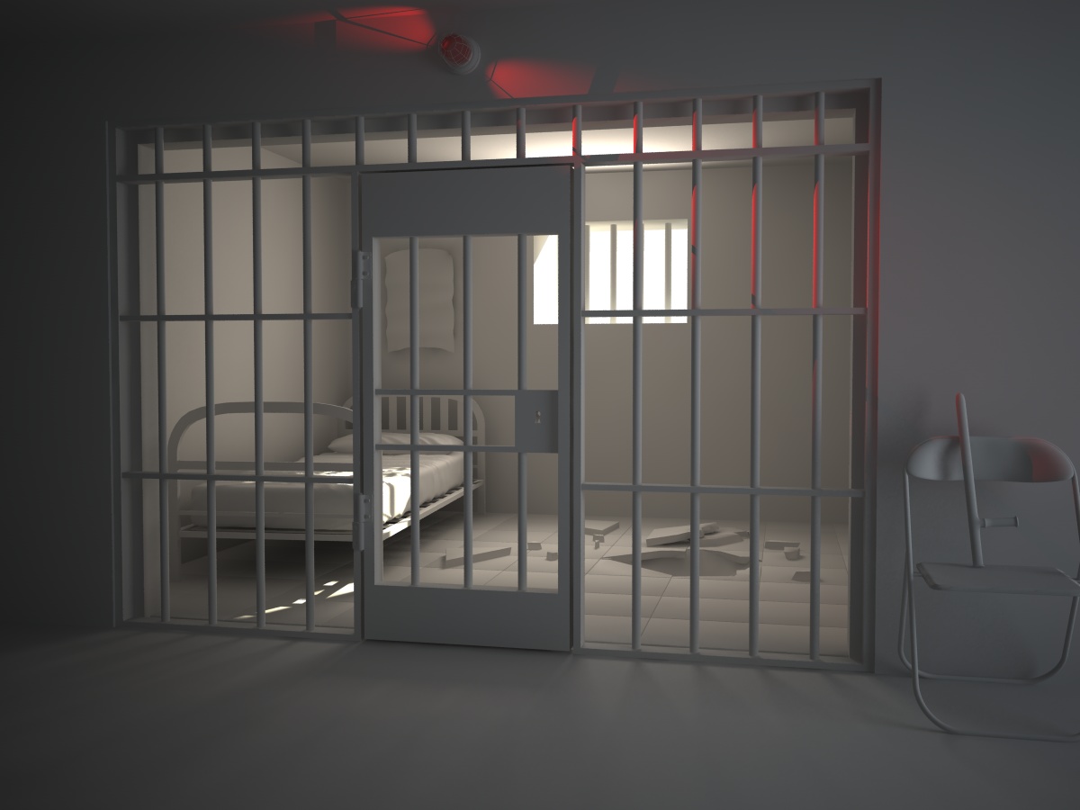 dalla scena che hai creato mi sembra una vecchia prigione con le sbarre in ferro, e la luce rossa di allarme non ci sta proprio, ci stona