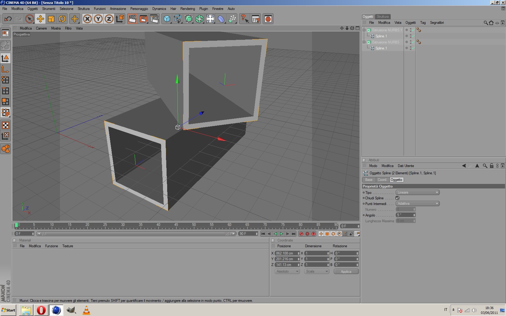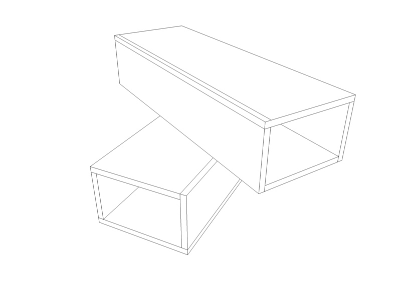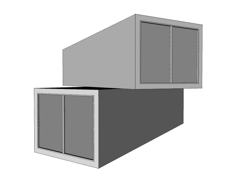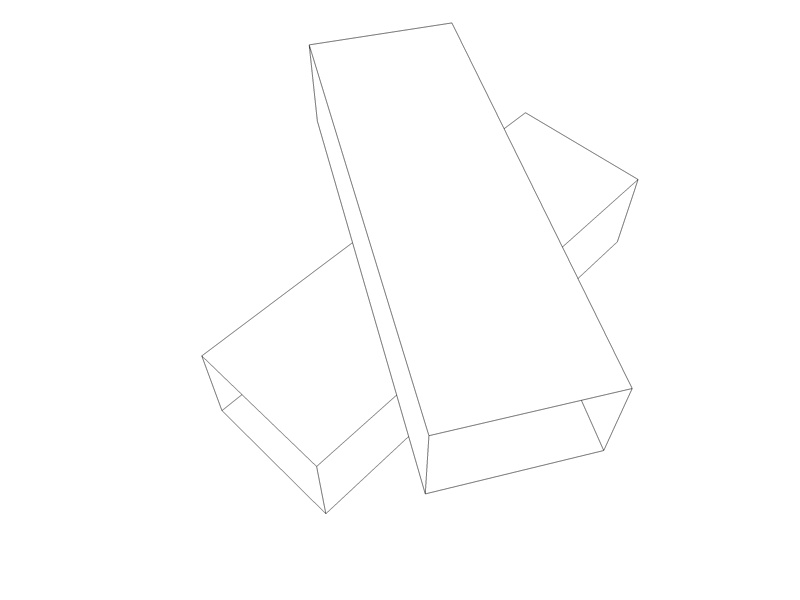 Si tratta di due cubi (5 x 3,3h x 15) sovrapposti e poi ruotati che andranno a creare la struttura principale.