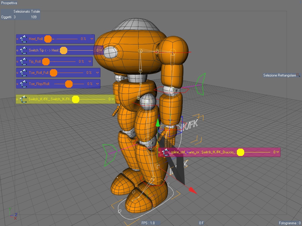 Ad es, della catena di joints del braccio mi interessa che la giuntura (joint) della spalla del robot guidi la controparte poligonale composta da spalla e braccio ("omero"), nel mio caso spalla e braccio sono un unico oggetto poligonale, ma potrebbero essere composti da più pezzi se magari aggiungessimo parte mobili.