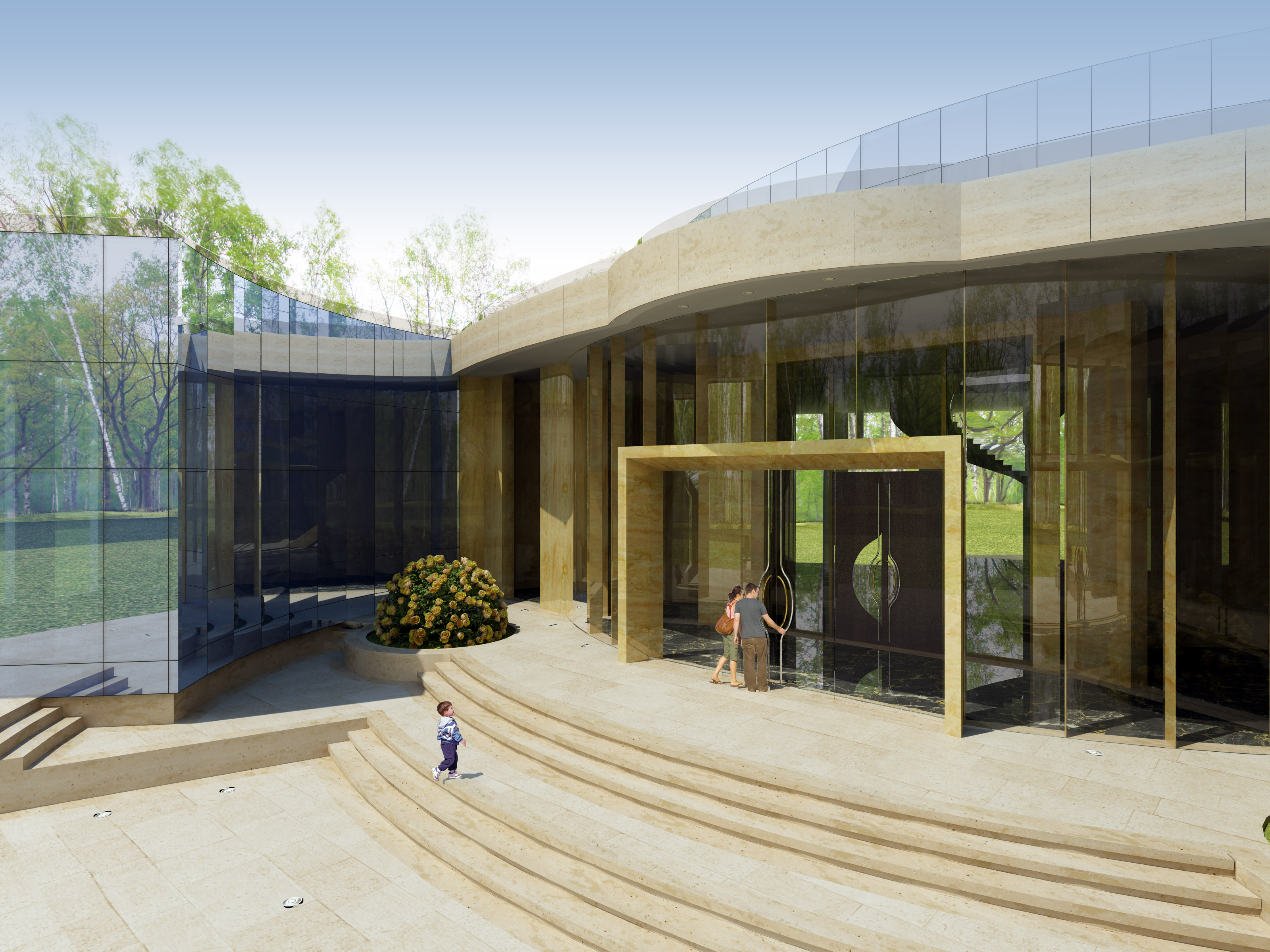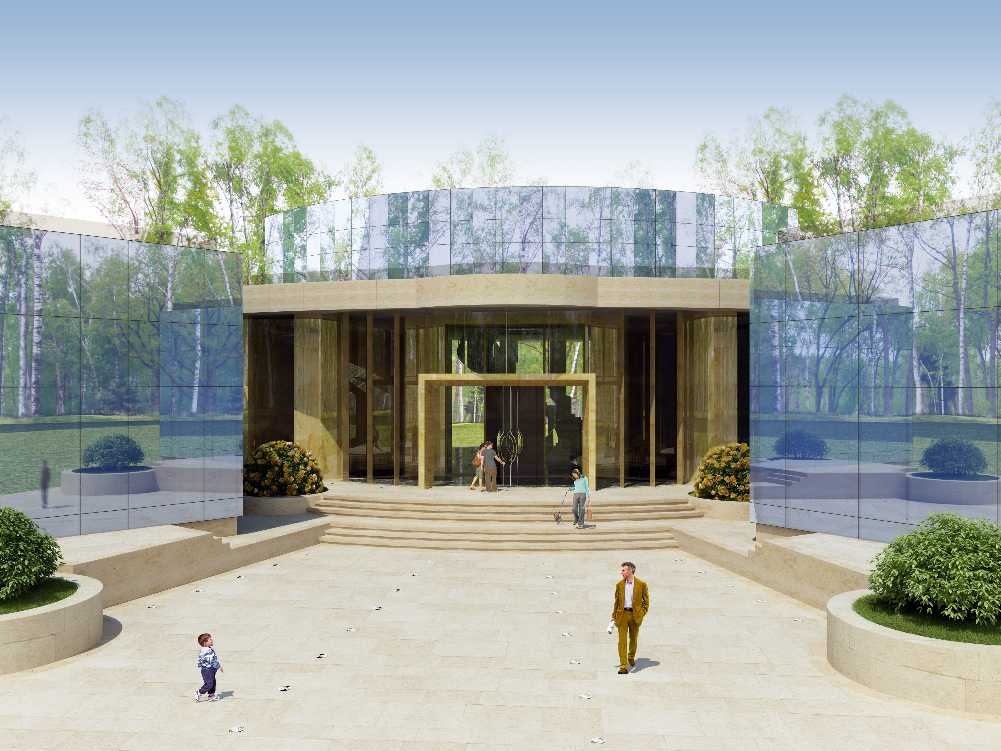 Ciao :D , ecco l'"evoluzione" in Vray del modello che stavo facendo, con ste benedette facciate a specchio. Nel frattempo mi hanno fatto cambiare un pò anche i materiali. Ho corretto gli angoli delle camere, mi restano ancora un po' di dubbi.