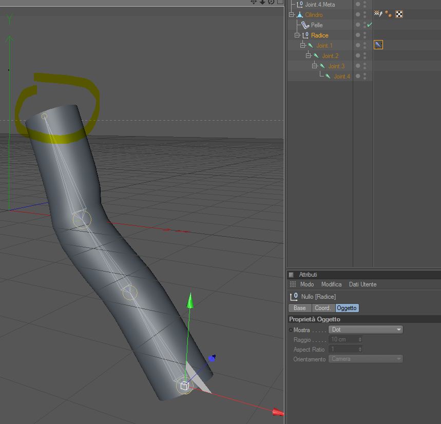 A questo punto ottieni una sorta di asticella che puoi rendere più o meno flessibile agendo sui parametri della dinamica sempre nel tag IK.