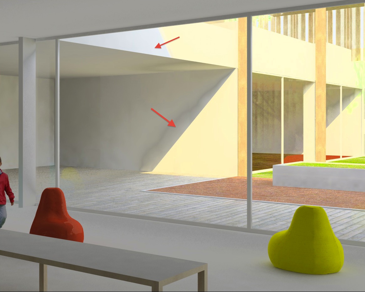 ci sono delle ombre strane, ho messo un sole pomeridiano che ha le caratteristiche postate qui di seguito, e un ombra area davanti alla vetrata