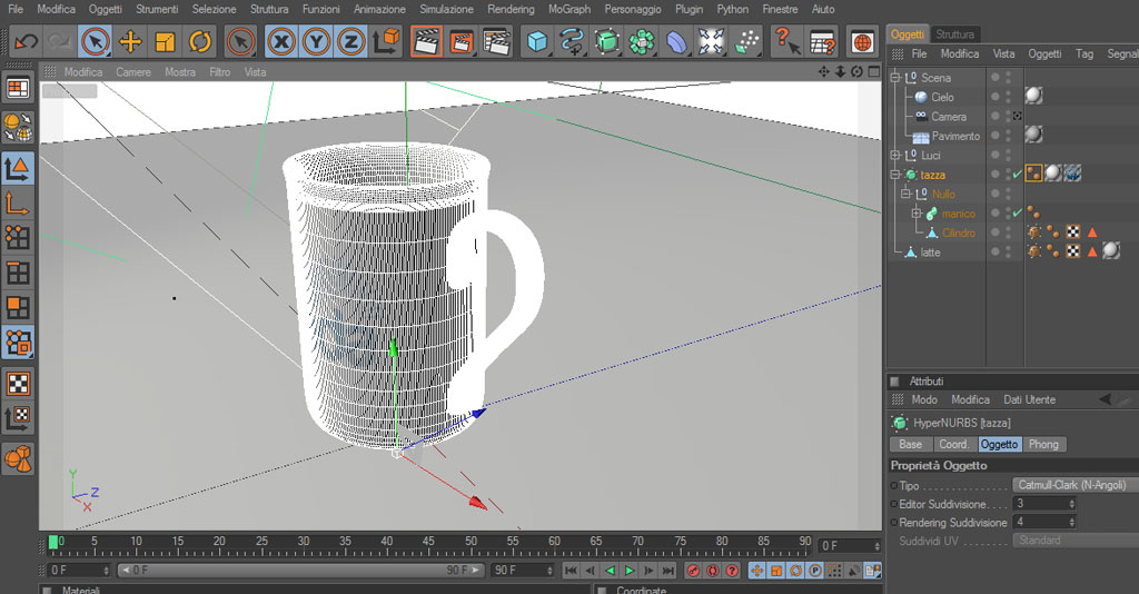 sto lavorando questa volta a una tazza di latte in ceramica ispirata al celebre film "Il gioiellino". Il problema è che pur essendo provvista di tag phong e hypernurbs, la tazze viene sempre renderizzata a "poligoni" invece che perfettamente liscia. Qualcuno sa dirmi il perché?