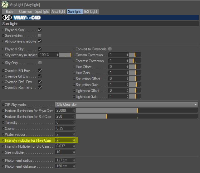 - Quando inserisci unicamente il sole fisico, fai cosi', la camera fisica mettila a F2.0 e lascia lo shutter a 200 ms e tutto il resto uguale.
