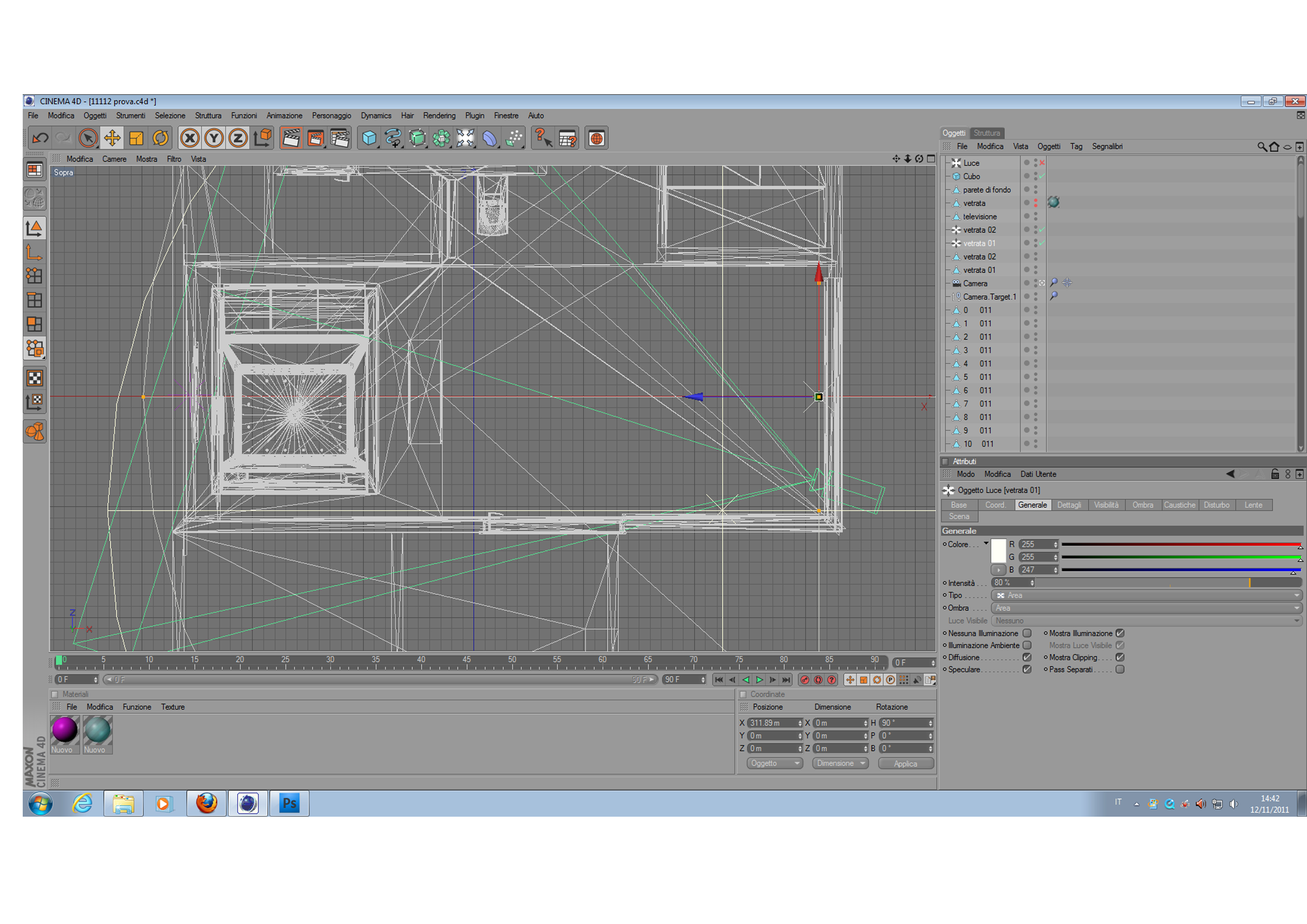 - Sono presenti due vetrate ed ho inserito luci area, forma rettangolare di misure pari alle vetrate e con decadenza lineare. (allego immagini parametri)