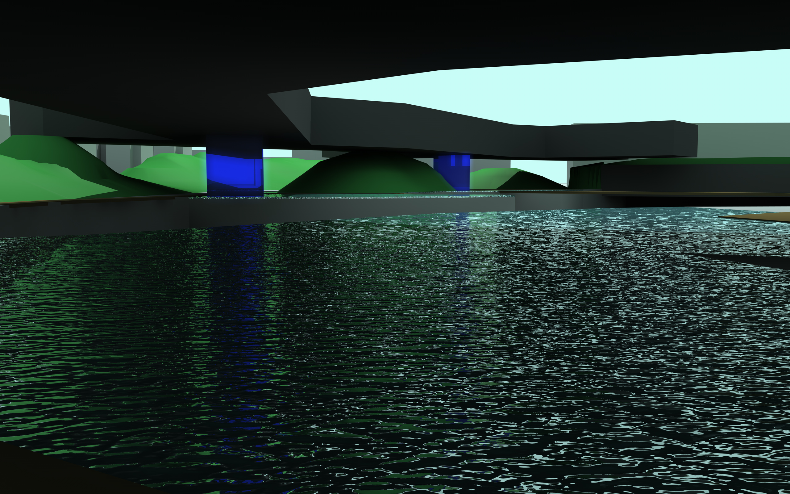 Abbiamo pensato, visti i tempi ridotti, di renderizzare la stessa vista su cinema e poi con photoshop montiamo l'acqua sul rendering di Maxwell.