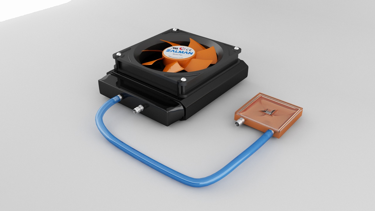 modellato il waterblock, manca solo la pompa dell'acqua :idea: (ho modificato il radiatore per problemi di grandezze dei tubi :P )