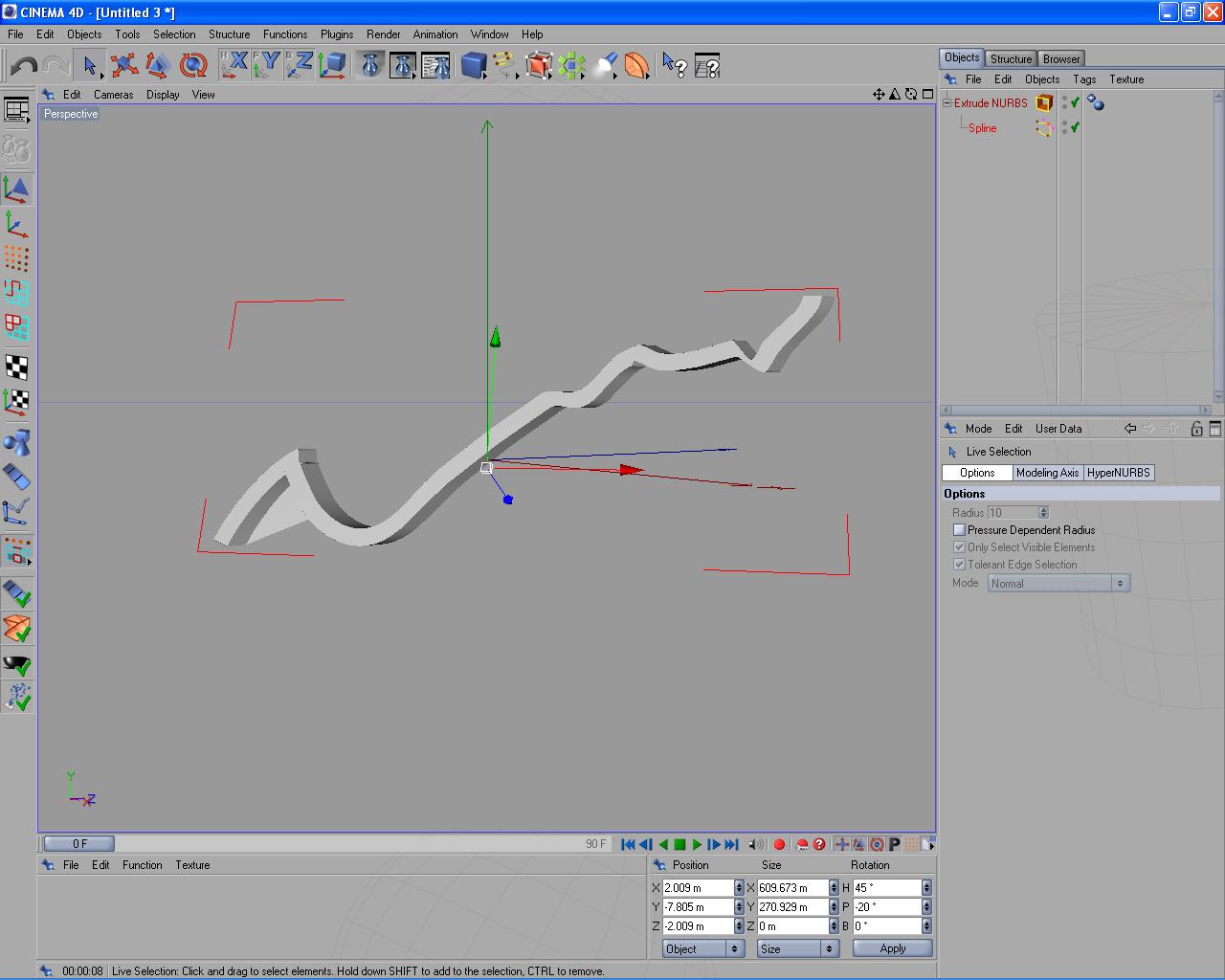 Puoi usare una spline aperta (o anche chiusa) ed estruderla con l'oggetto Estrusione NURBS