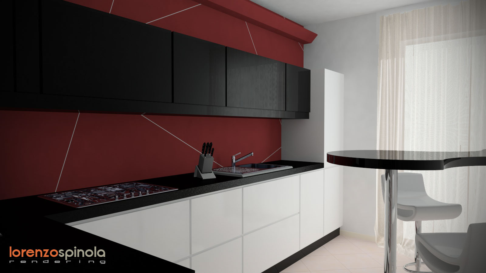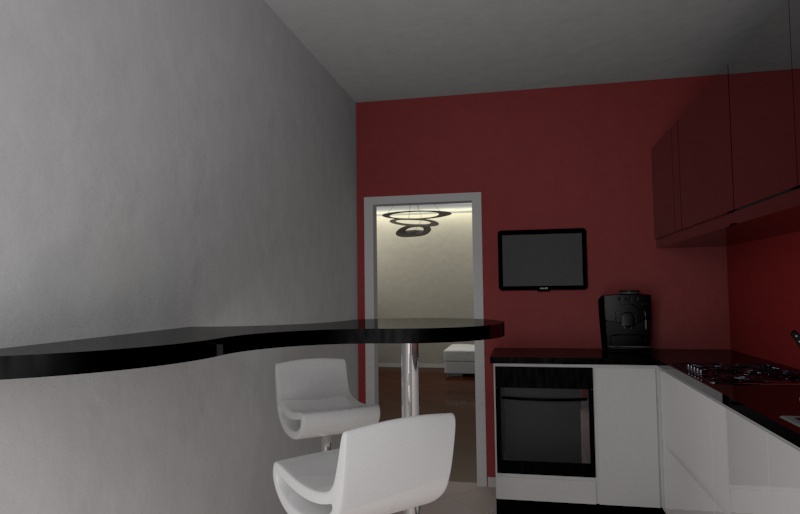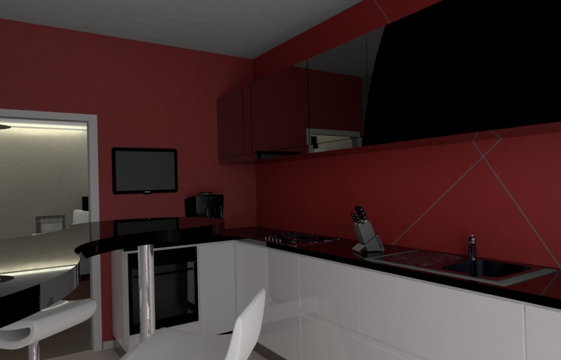 noterete che nella cucina le pareti saranno diverse...le definitive sono quelle con una parete rossa.