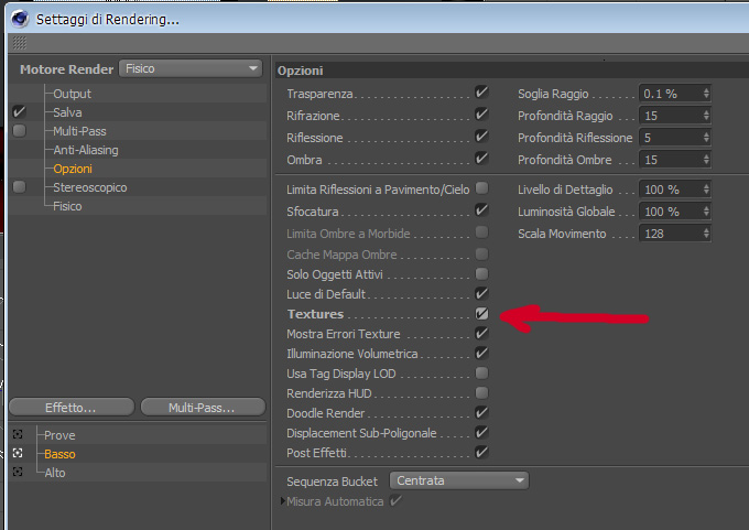 Cosa può essere successo? Ho chiuso (senza salvare) e riaperto: E NULLA. Ho riavviato il pc e rilanciato C4D: NULLA. Le texture si vedono nella schermata di modellazione, ma una volta lanciato e ultimato il rendering SPARISCONO.
