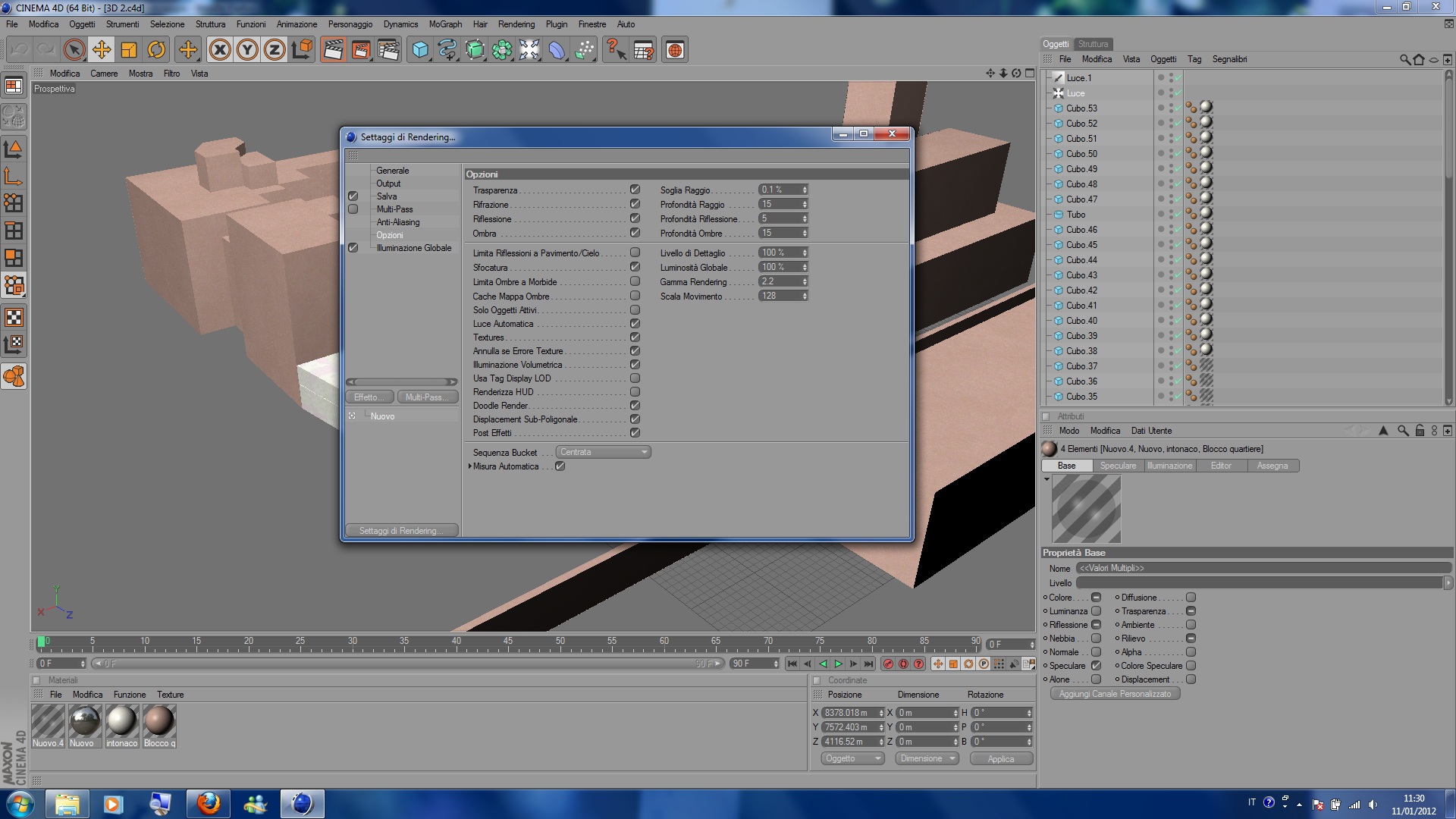 Mentre questo è quel che fa adesso! Come vedete, nella schermata principale si vede che le texture sono allegate ai solidi, ma all'atto di renderizzare, SPARISCONO!