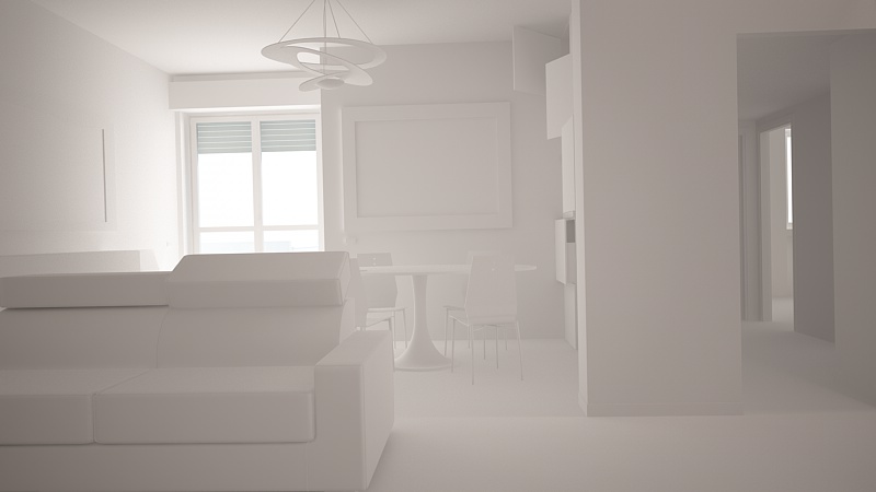 10 Luci+Sun Light+Sky??????? :) :) :) . Siccome è un interno, a che ti serve una Sun Light assieme a Sky?? :) :) O l'uno o l'altro. Di Luci Area ne potrebbero bastare 2: una alla porta-finestra, una dietro la Camera.