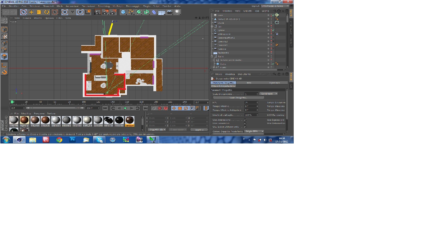ma veniamo al dunque, posto immagini di come è impostat la scena, la scena senza materiali, e con i primi materiali inseriti.