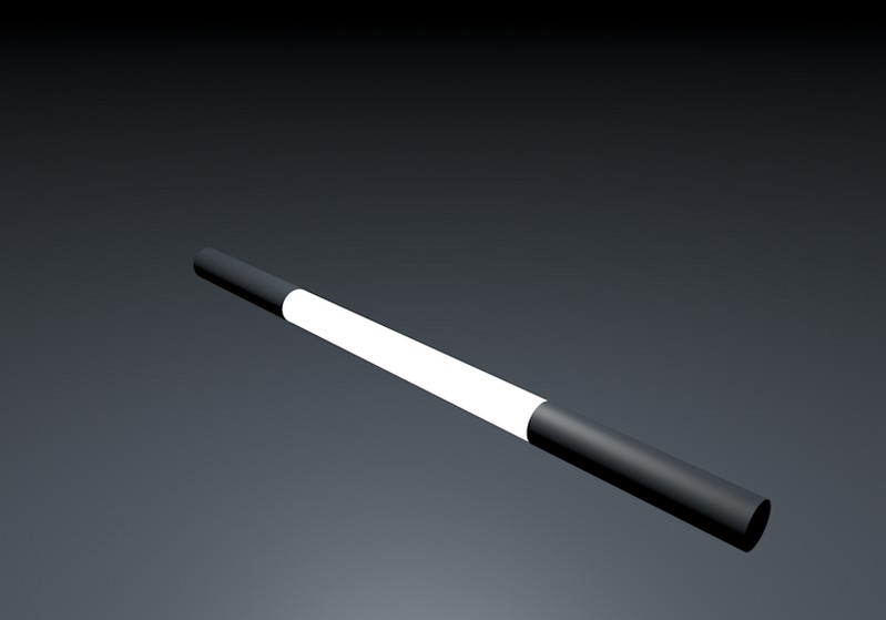 Ho semplicemente applicato due luci area con geometria sferica a entrambe le estremità della parte in vetro (con un proprio spessore) e successivamente applicato un materiale vetro con un glossiness e una luminanza del 20%.