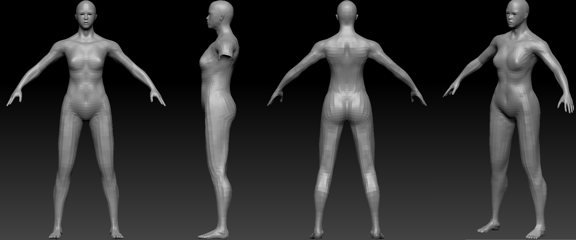 mostro quella che previa qualche sistemazione - soprattutto concentrata nelle proporzioni e nell'eliminazione dei triangoli rimasti - sarà la base-mesh per un nuovo personaggio femminile.