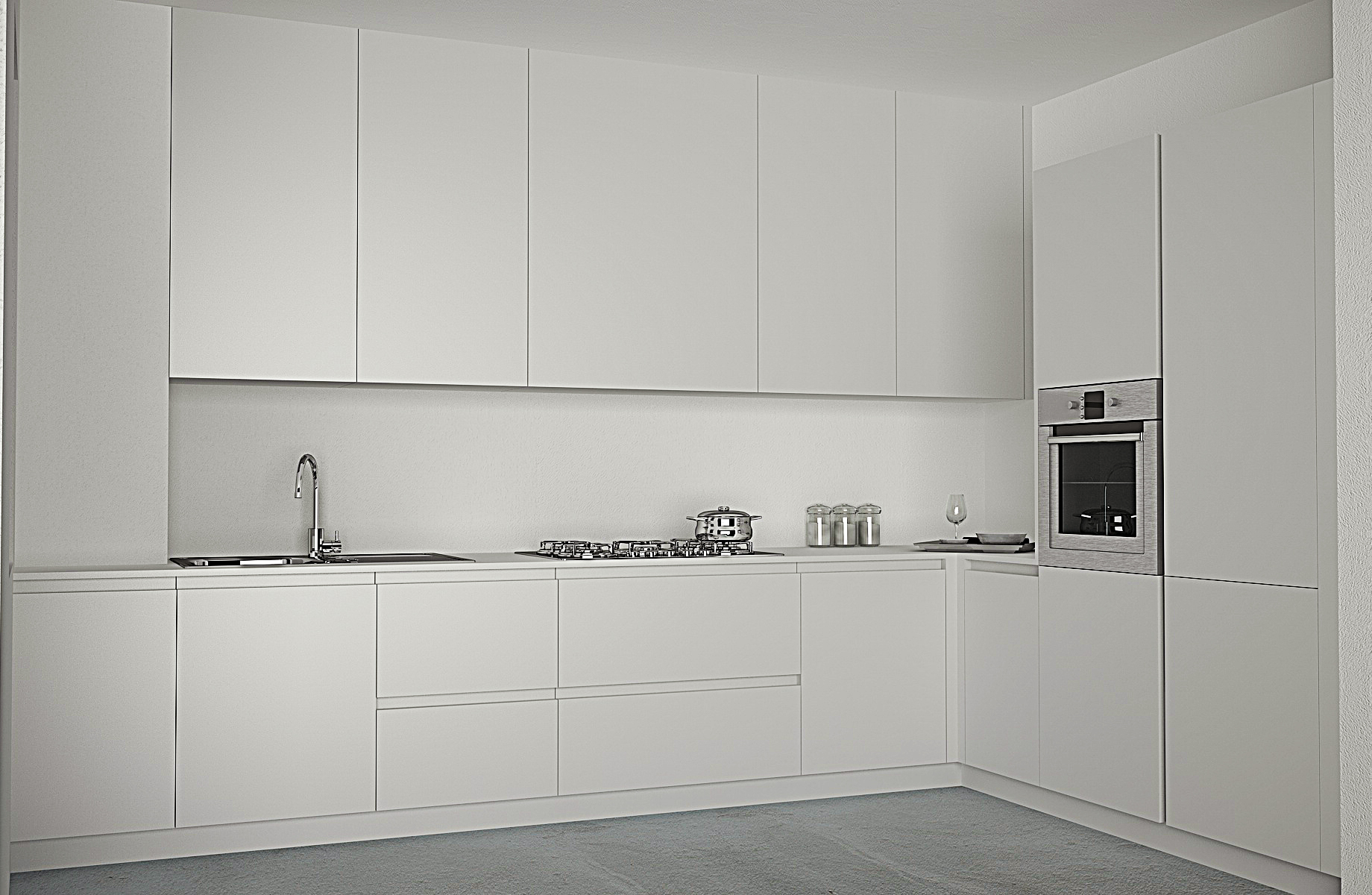 infine aggiungerei o una mensola o un tubolare sul fondo sotto il pensile...magari con qualche dettaglio in più e un pelo di colore risulterà più reale.