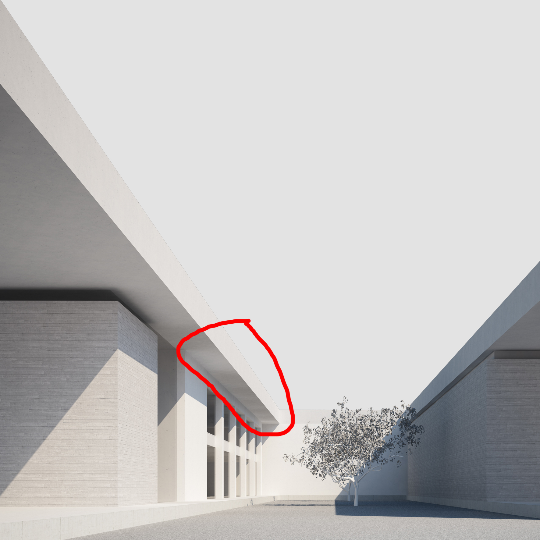 salve a tutti, ho un problema con delle riflessioni eccessive, che vi ho segnalato in rosso nell'immagine. su che parametri dovrei intervenire per fari si che l'intradosso della copertura non presenti il riflesso della parete sottostante??? grazie a tutti
