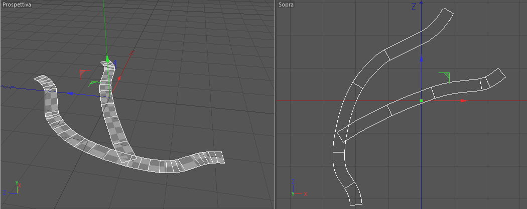 Ho anche una seconda domanda relativa alla prima, suppponiamo che questo fiume si biforchi, c'è un modo per collegare una spline ad una seconda spline in un punto intermedio ed utilizzare comunque sweep nurbs? Riuscirei così a generare un nastro di fiume che si biforca?