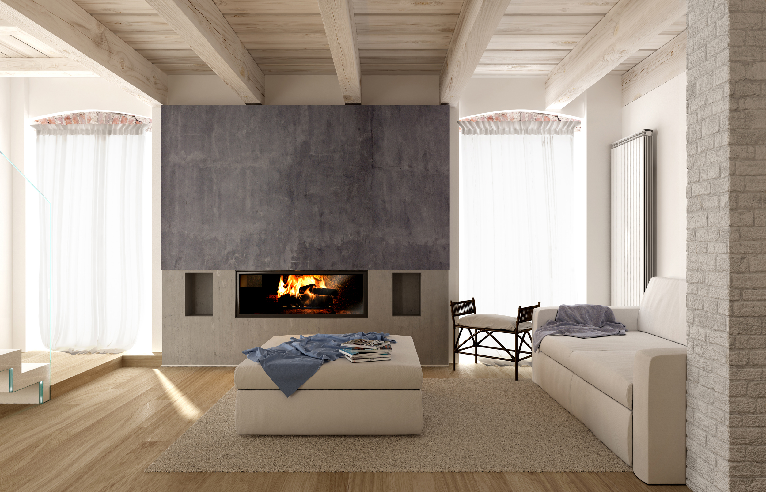 Il pavimento fa parte di una collezione,le travi invece le ho fatte io,dopo aver bodypaintato il modello...x la luce,ci sono 2 area alle finestre,un rinforzo dietro camera e uno spot per il sole...