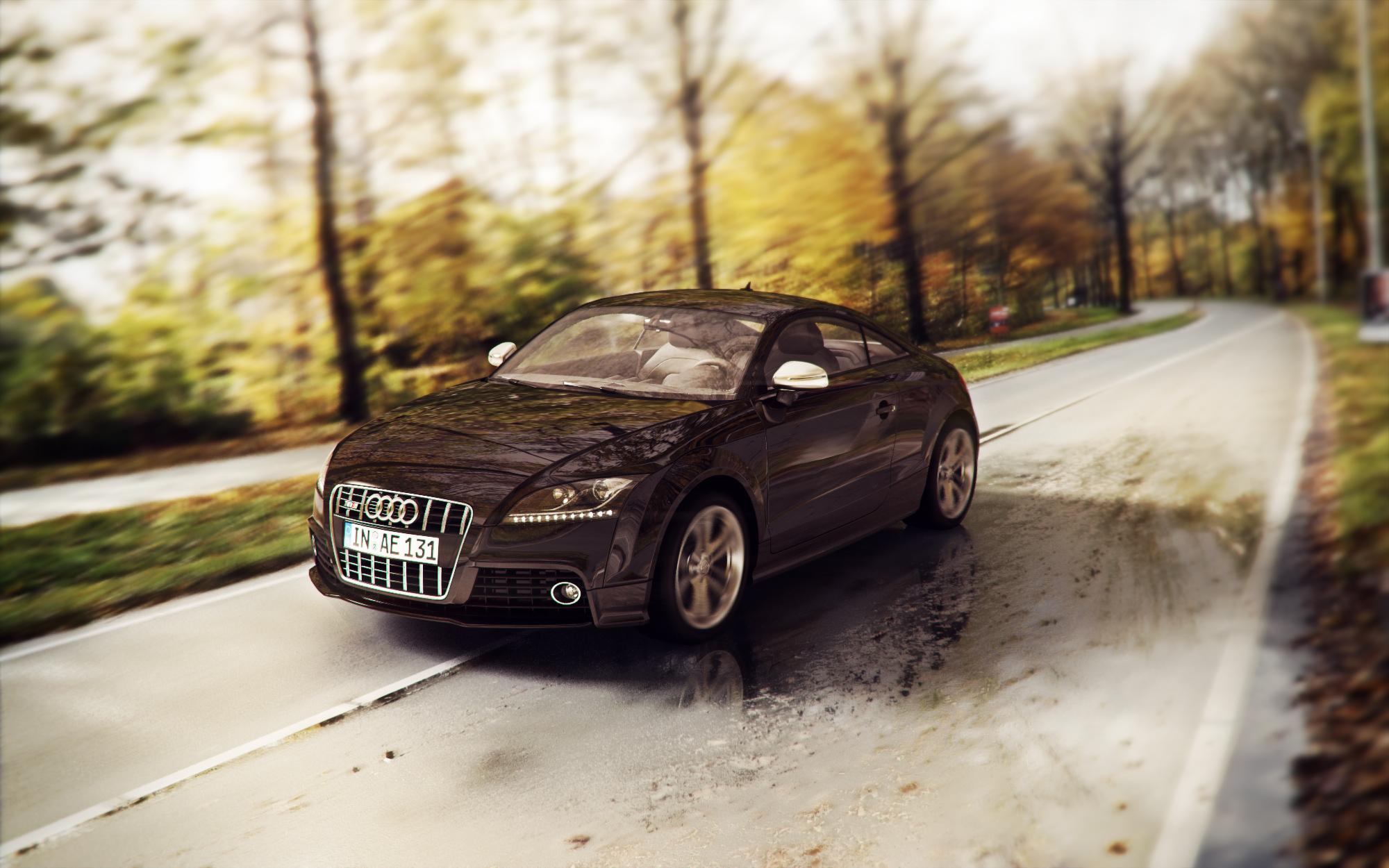 Ho provato a simulare la carrozzeria bagnata con delle goccioline ma il risultato non mi soddisfa molto...