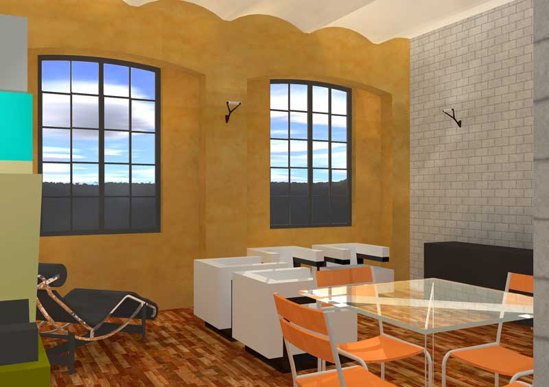 la struttura dello stabile è stata fatta in allplan mentre gli arredi sono stati presi su e-interiors