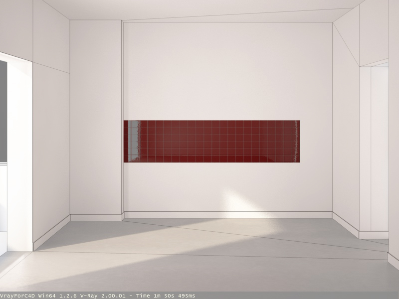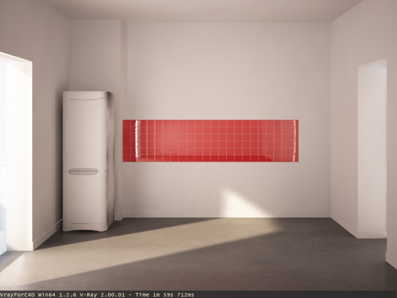 ho provato a fare un rendering aumentando i valori della ig e dell'antialiasing e quell'effetto brutto assai che dava sulla parete del frigo, invece di scomparire è addirittura aumentato... :?
