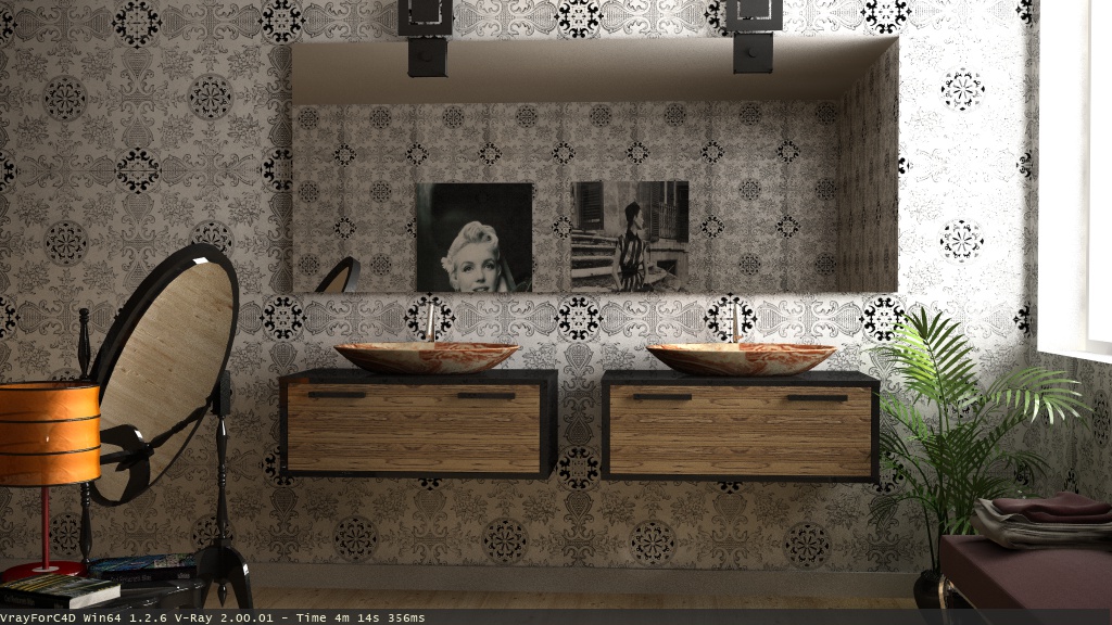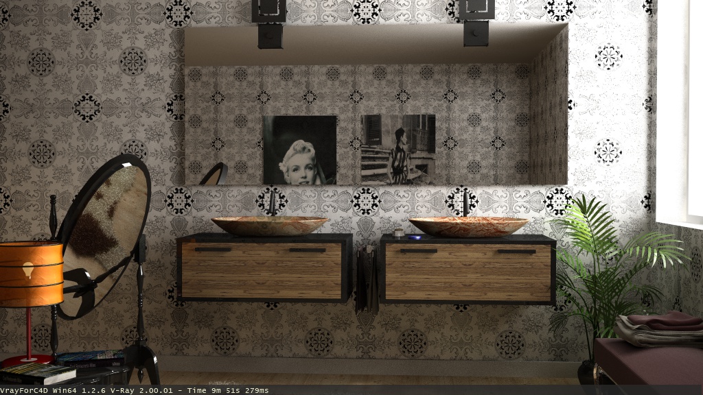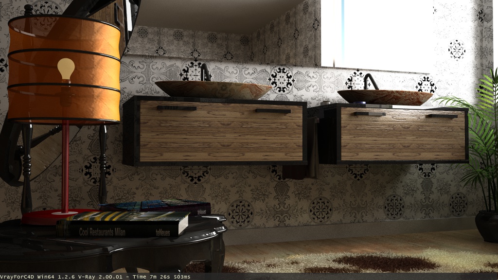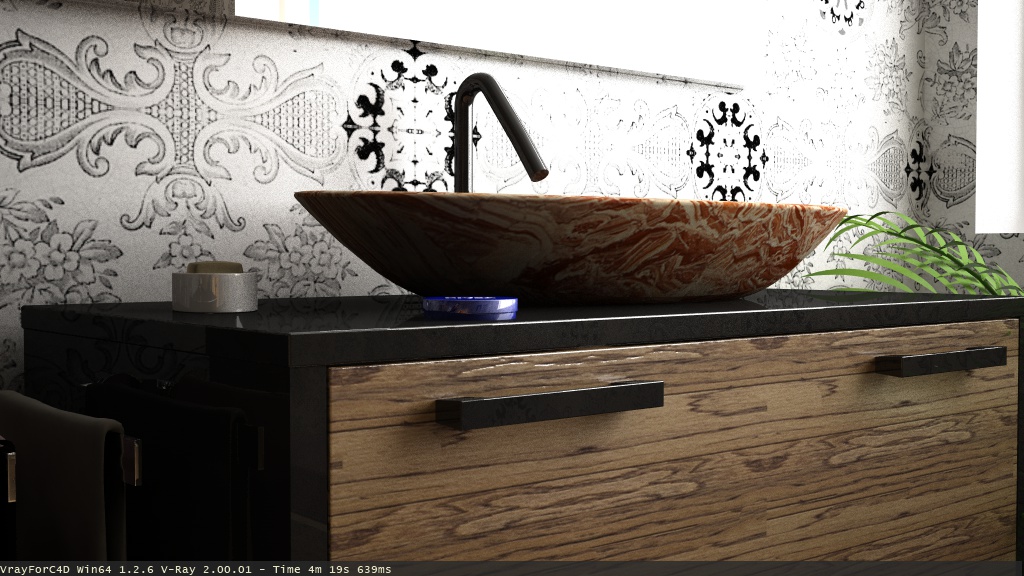 si si lo so =) infatti sto cercando di modellare il flusso in maniera che sembri più fluida...li è stato messo solo per capre un attimo xd ...ad ogni modo non era richiesto...qui lo sto portando avanti per puro piacere...ci mancherebbe che si interessassero della rbinetteria ahahah...il bagno faceva parte di una residenza un pò particolare e aveva il compito di spiegare delle situazioni visive...infatti è stat presentato un render vuoto solo per far vedere gli spazi ...questo invece è il bagno padronale di un'appartamento più grosso ...nulla di particolare solo che non avendo mai renderizzato un bagno ho pensato di cogliere l'occasione per migliorarmi un pò ;).