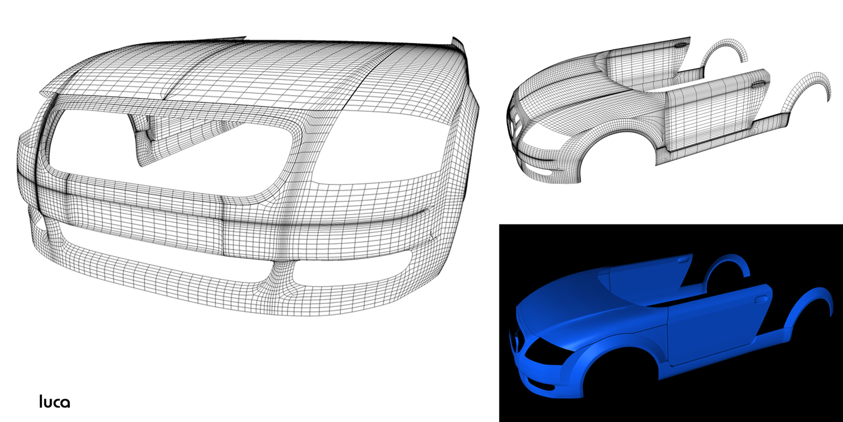 Purtroppo quelle "ondine nella parte sotto sono costretto a farle perchè il cofano è modellato sul passo ruota in quel modo. Ma poi, appena inizia la portiera e la fiancata sapriscono! Se qualcuno ha suggerimenti da darmi per evitare questo problema (che xaltro nel rendering non dovrebbe più vedersi) ben venga.